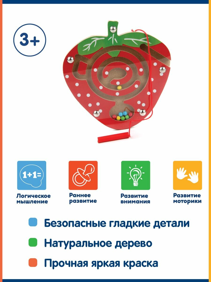 Деревянная игрушка рамка-лабиринт "Клубника" для детей, Фабрика Фантазий / Развивающая логическая игра-головоломка. интересное:
