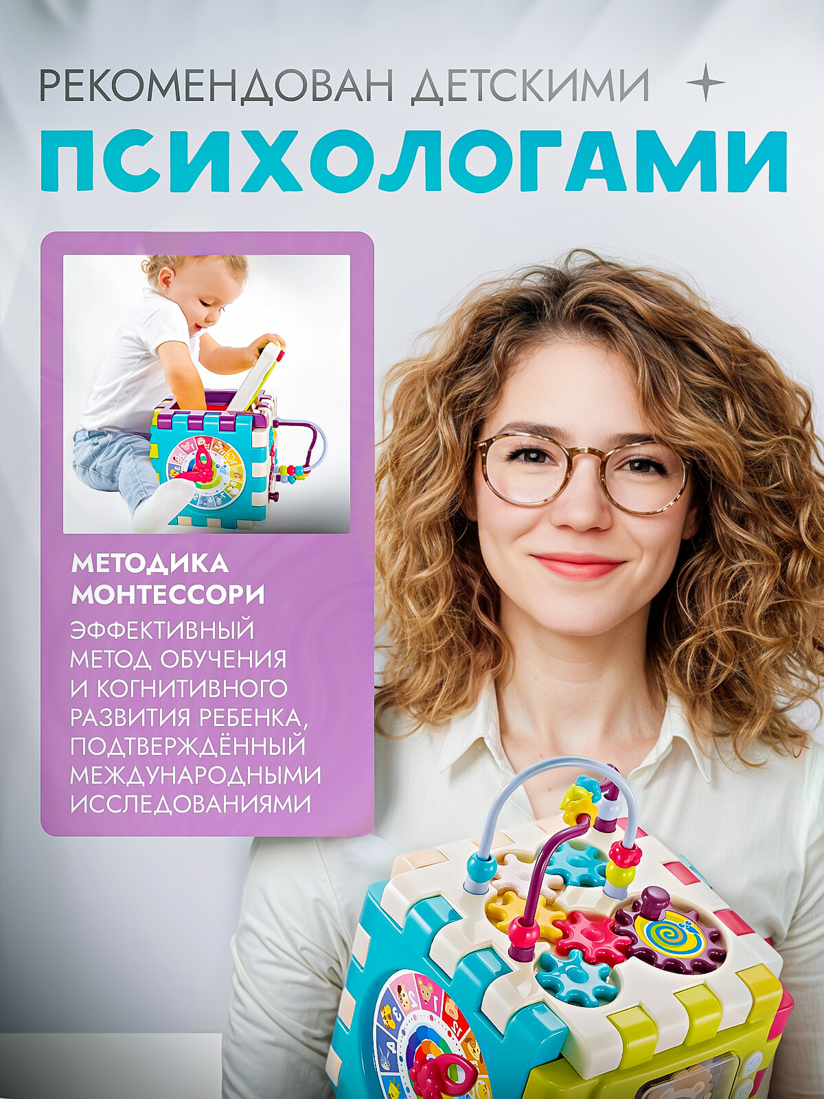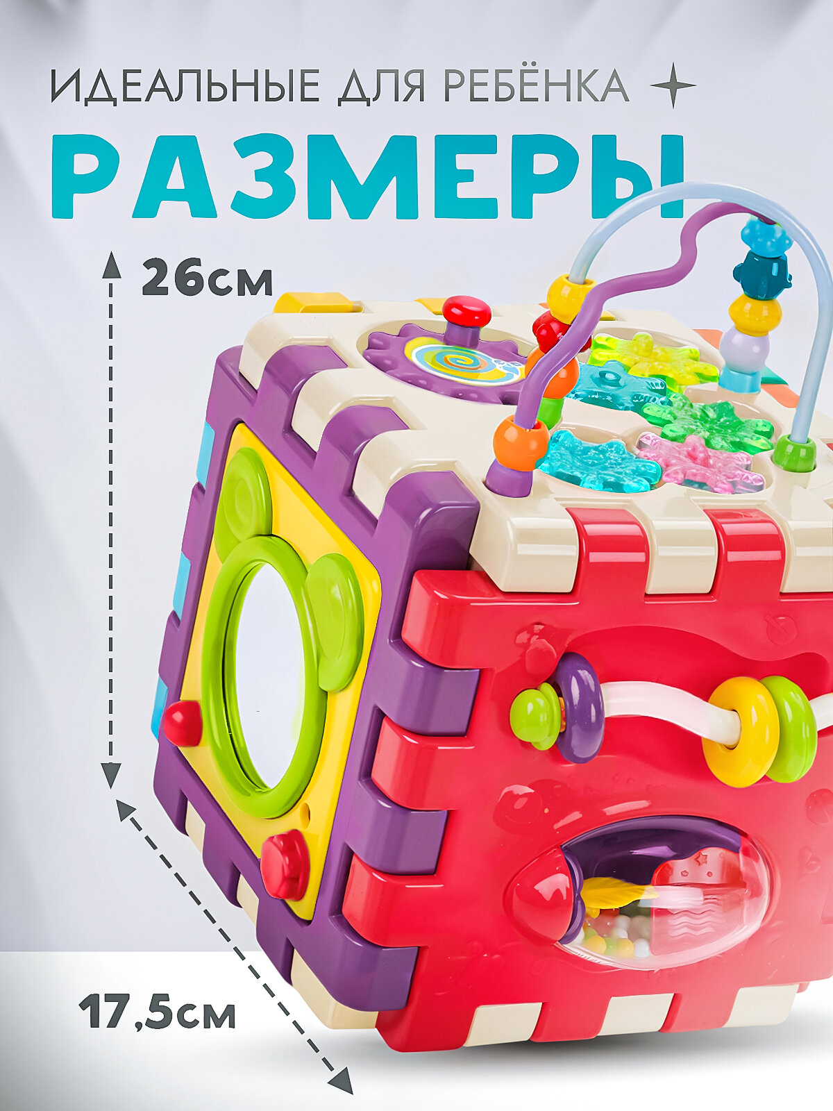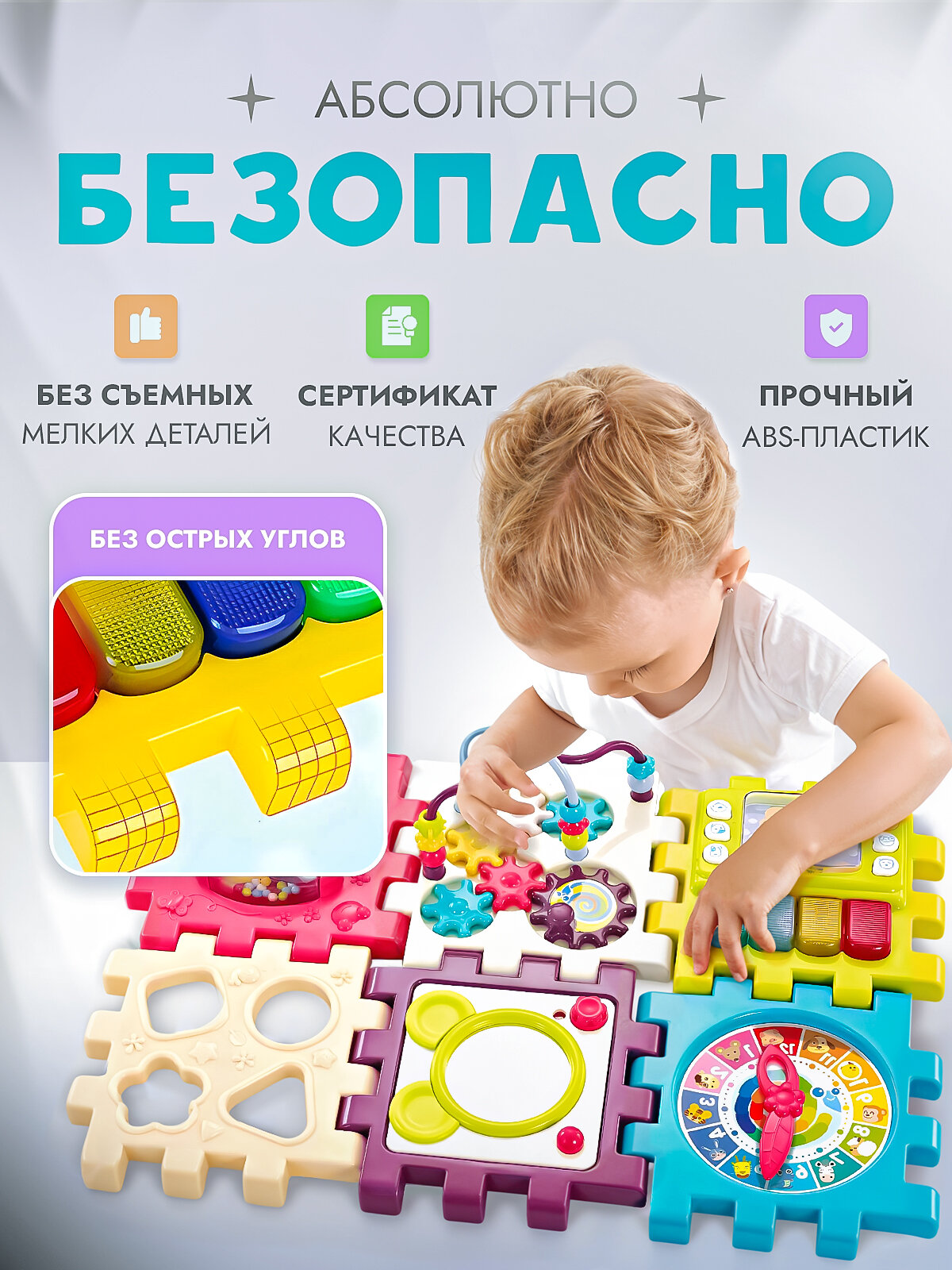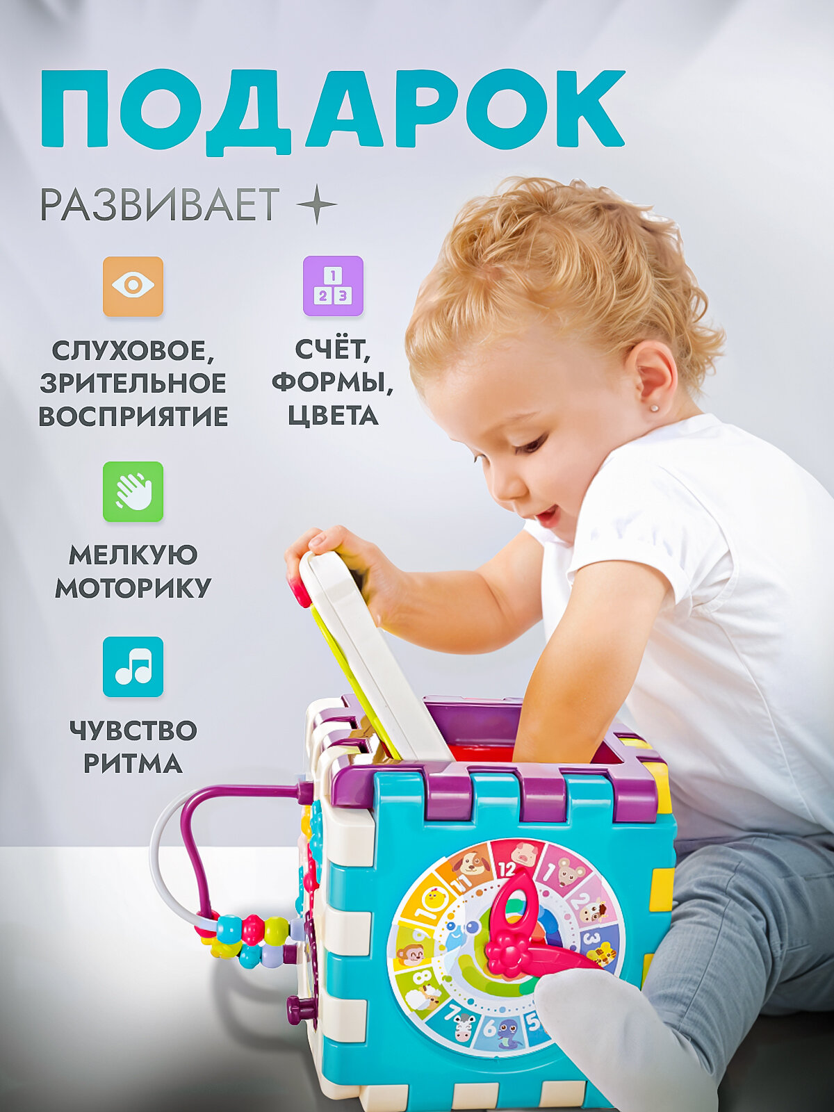 Интерактивный развивающий бизикуб Sharktoys, 10 элементов, свет и музыка, игровой центр для малыша
