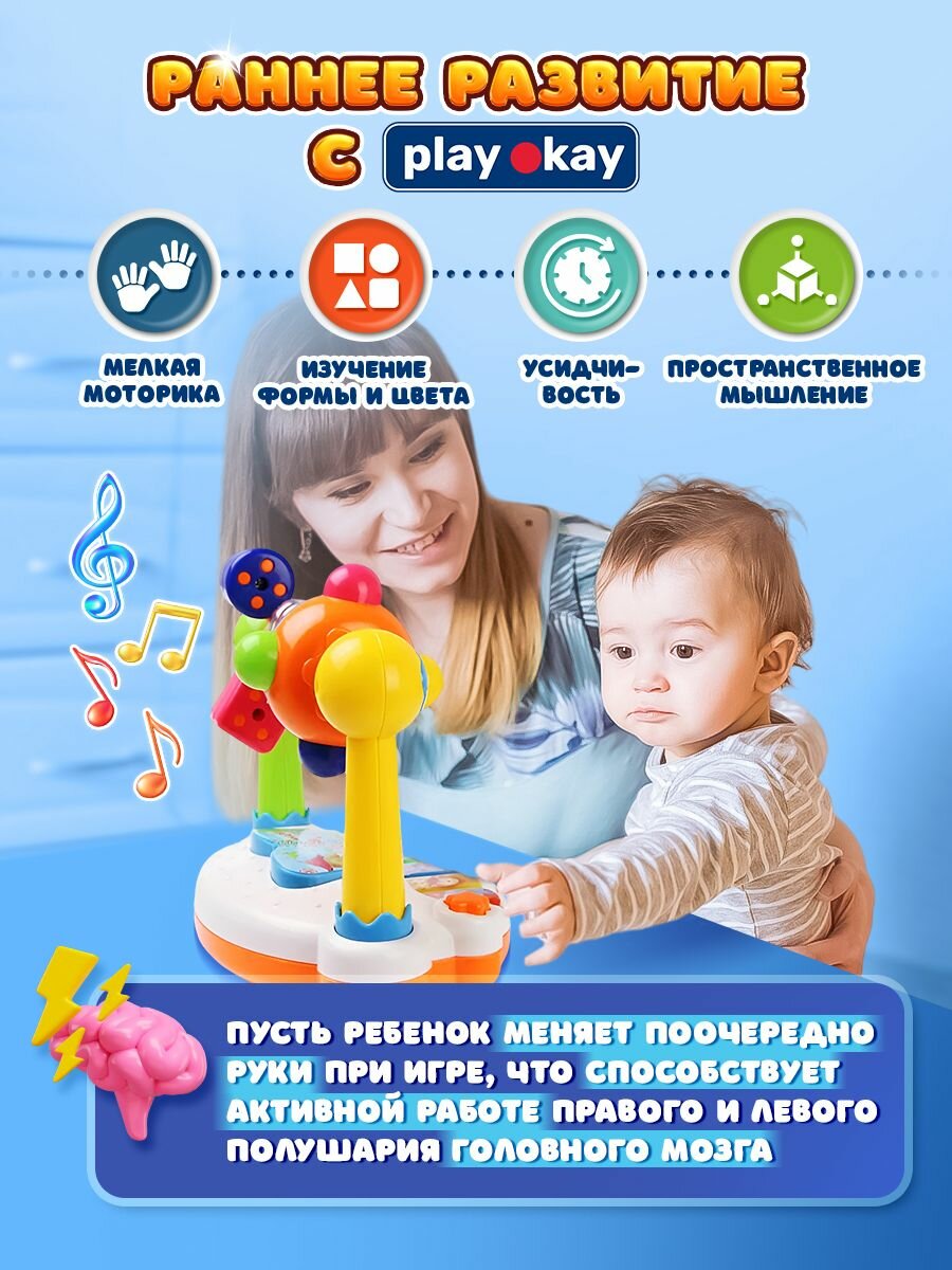 Игрушка интерактивная развивающая музыкальная Play Okay, пианино погремушка, игровой центр со звуком и светом интересное: