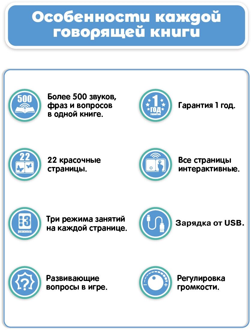 | Развивающие функции | бытовые и социальные навыки / изучение цветов / память и внимание / речь и чтение |