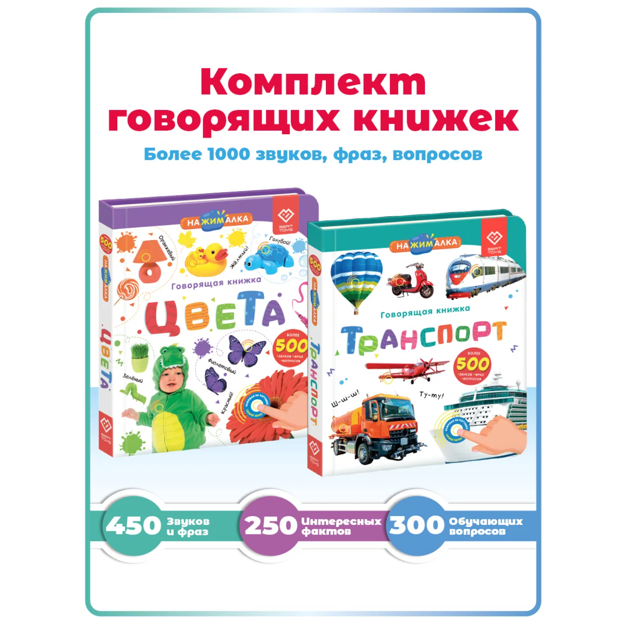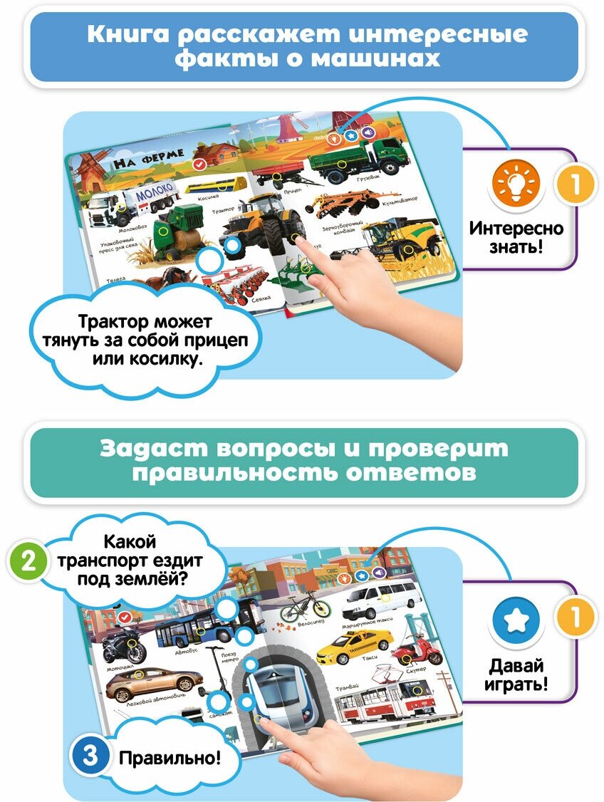 Купить Говорящая музыкальная книга Нажималка 2в1 "Транспорт + Цвета"