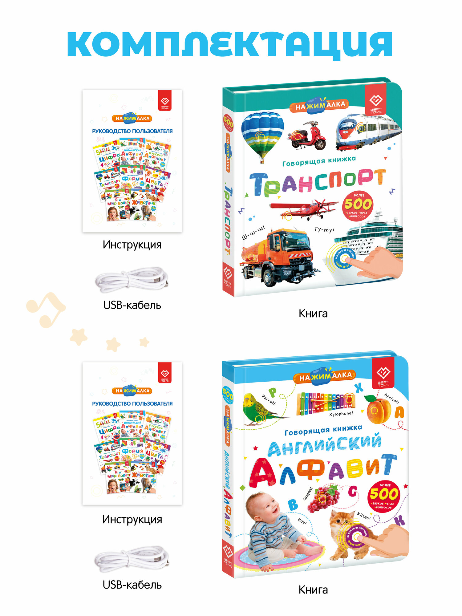 Купить 2в1 Говорящая книга Нажималка Транспорт + Английский алфавит