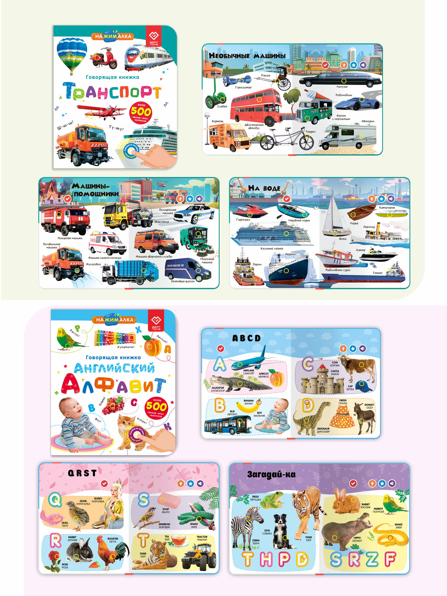 2в1 Говорящая книга Нажималка Транспорт + Английский алфавит интересное: