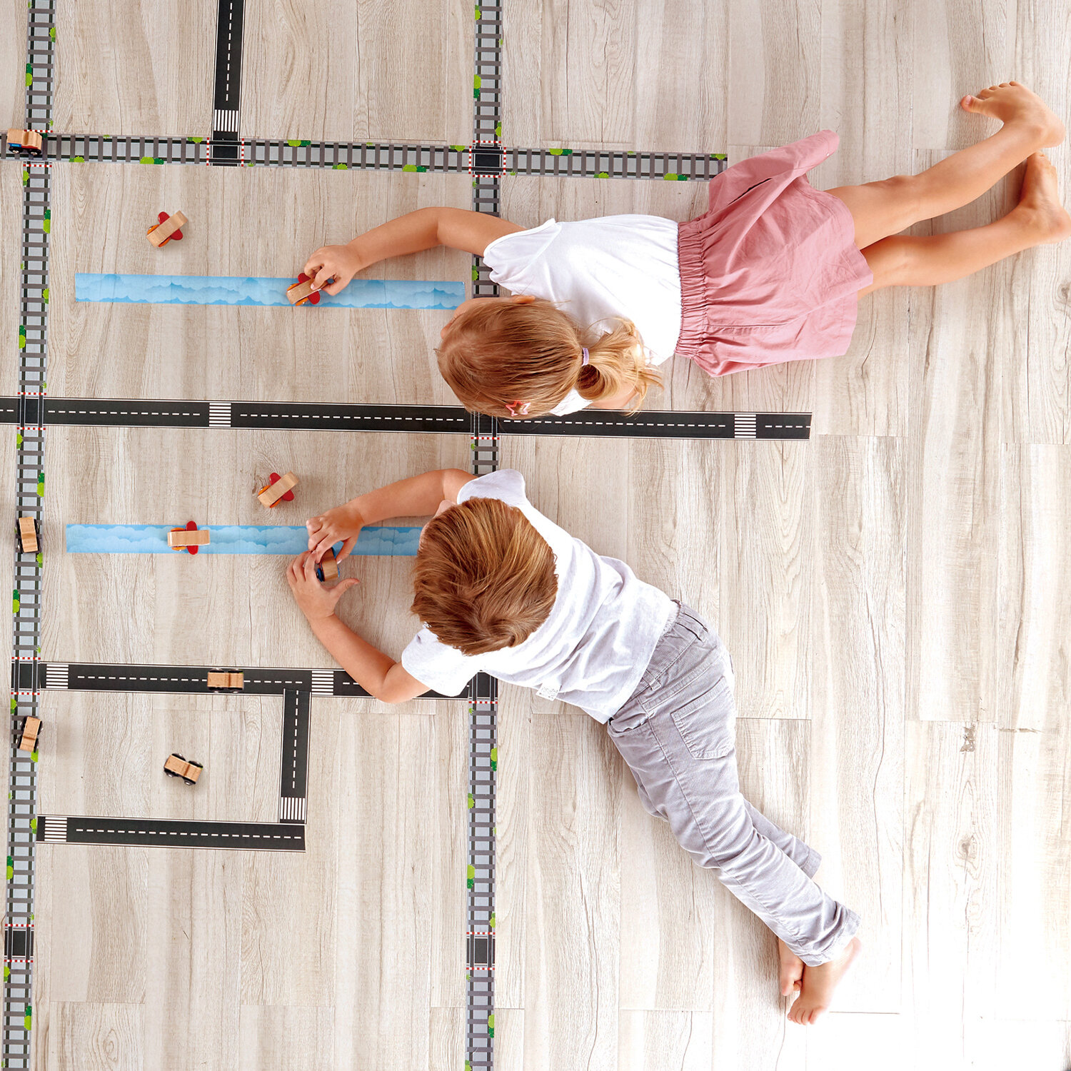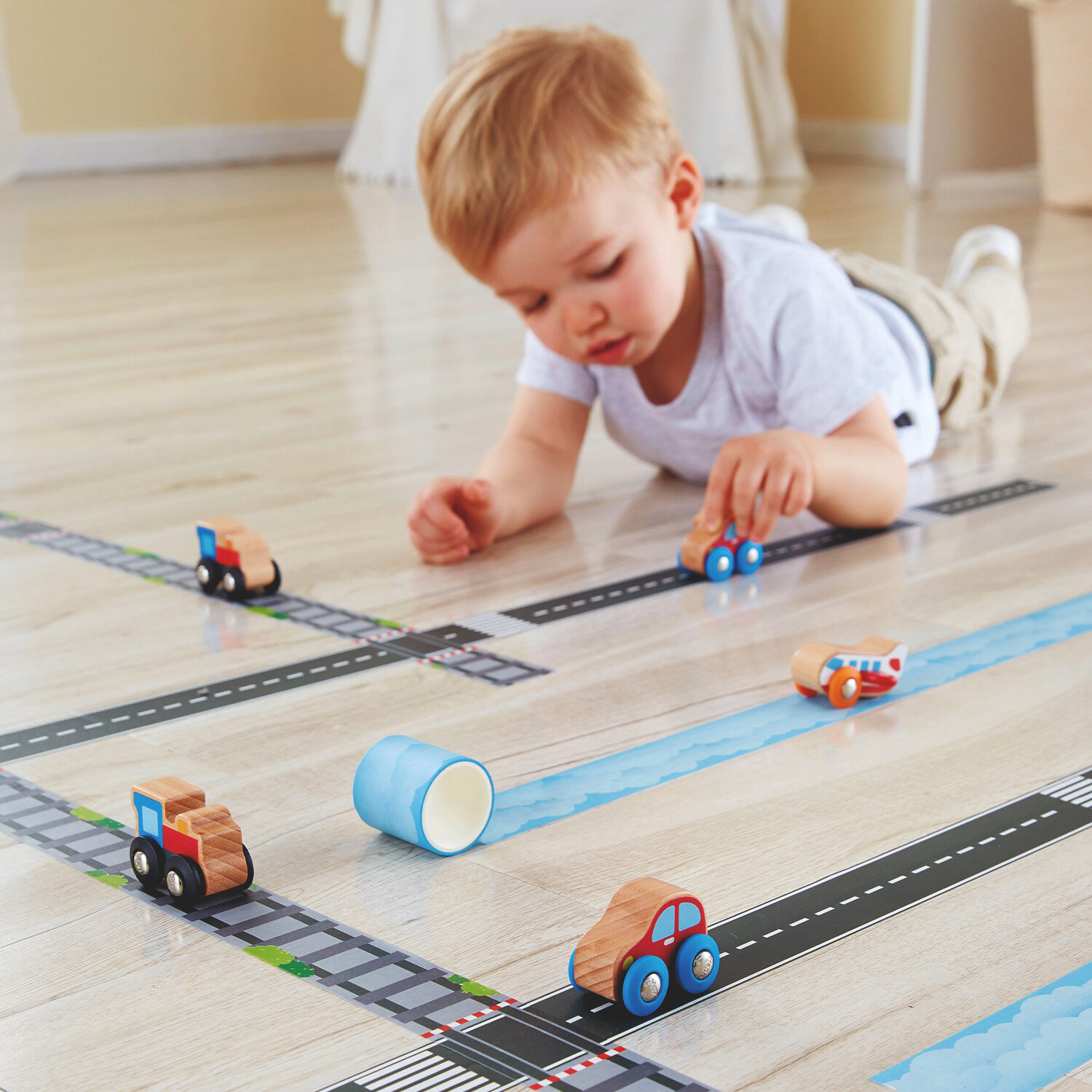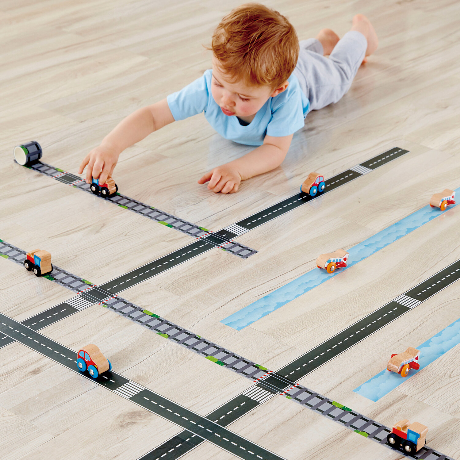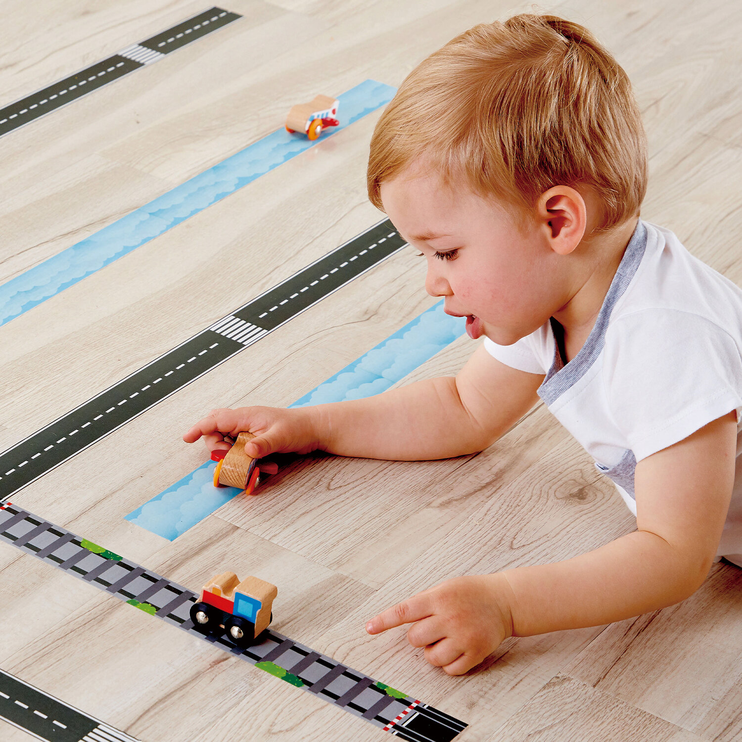 Развивающий игровой набор для детей Hape "Деревянный поезд с лентой рельсов" E0462_HP