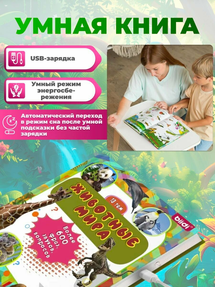 Говорящая книжка игрушка для малышей: животные мира и их увлекательные истории для детей от 1 года, 600 звуков, 13 тем, подарок ребенку интересное: