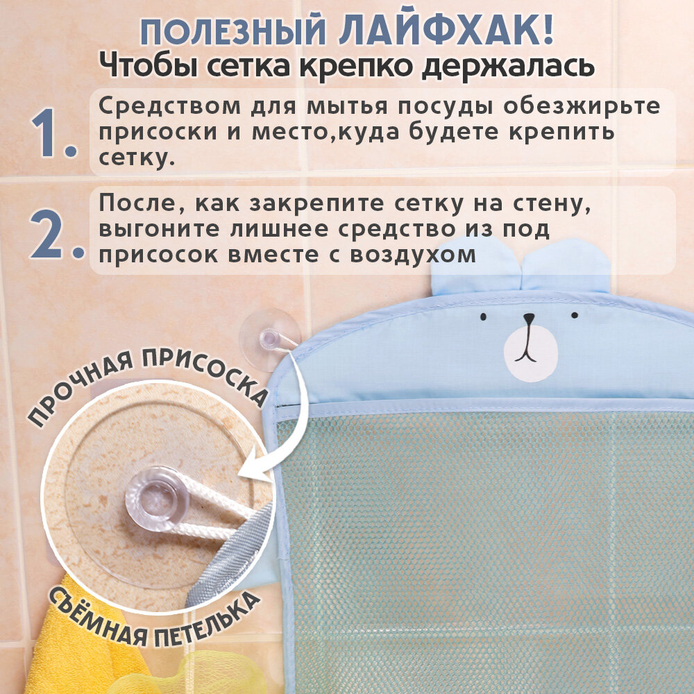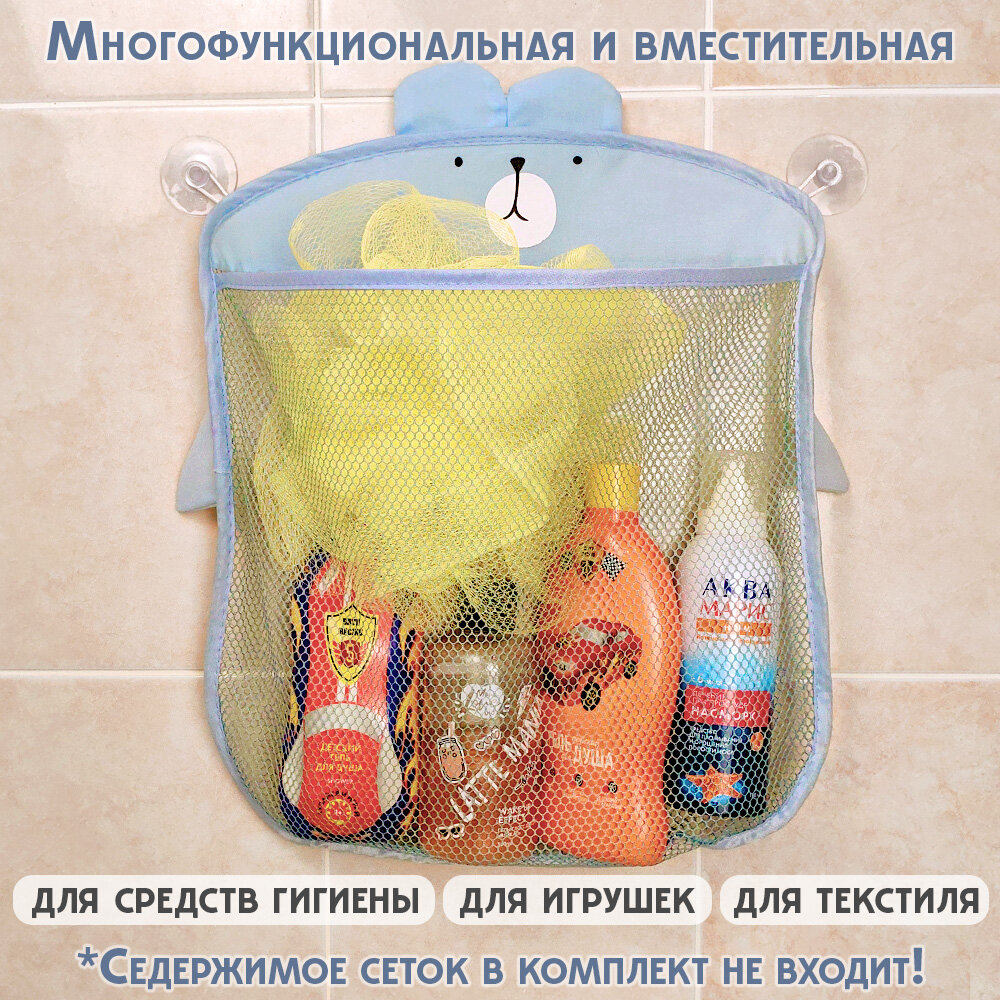 Органайзер для игрушек "Сетка-органайзер", на присосках, голубой, текстиль интересное: