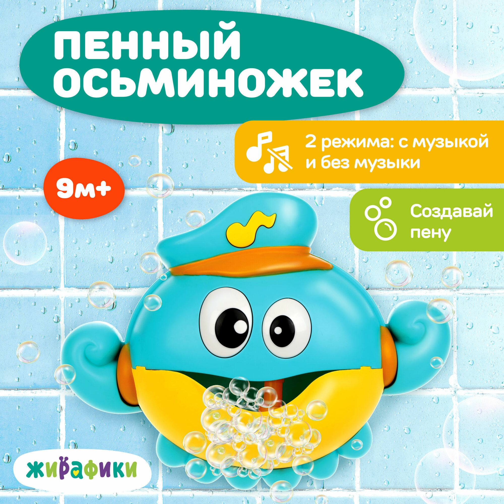 Игрушка для ванной и купания Жирафики "Осьминог" генератор пены (батарейки приобретаются отдельно) интересное: