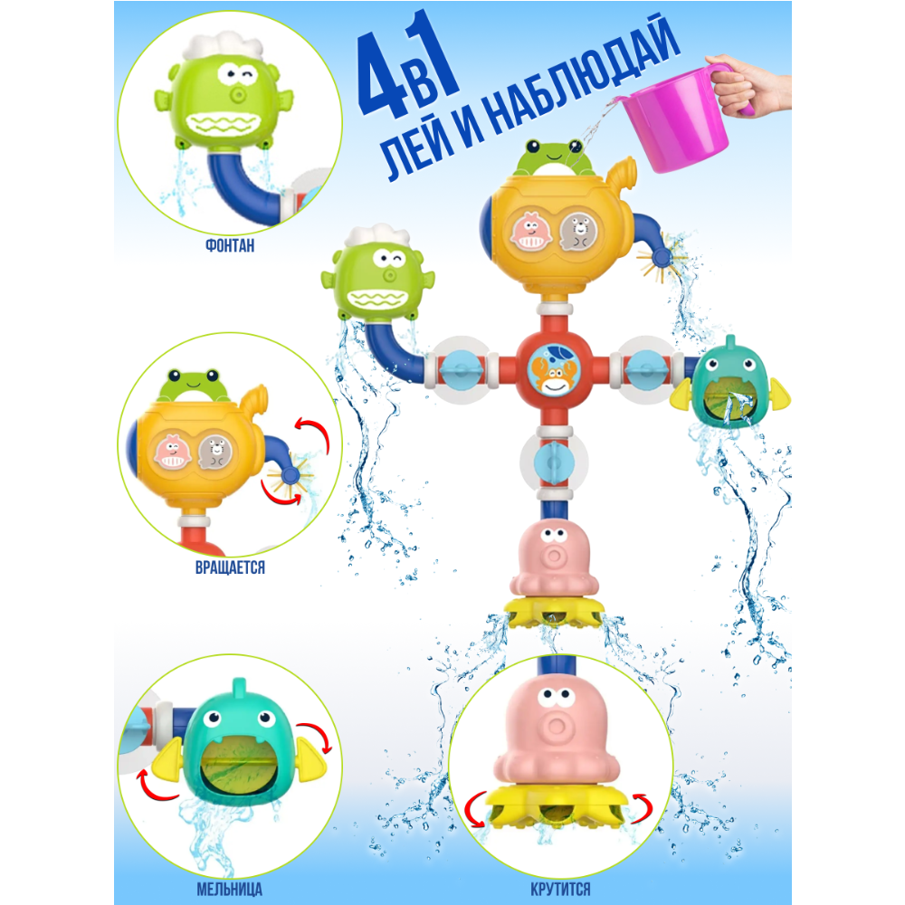 Игрушка для ванной Мельница (10 деталей) на присосках (4шт.), рыбка, лягушка, осьминог, без батареек, 30 х 13 х 32 см, НЕ8070 интересное: