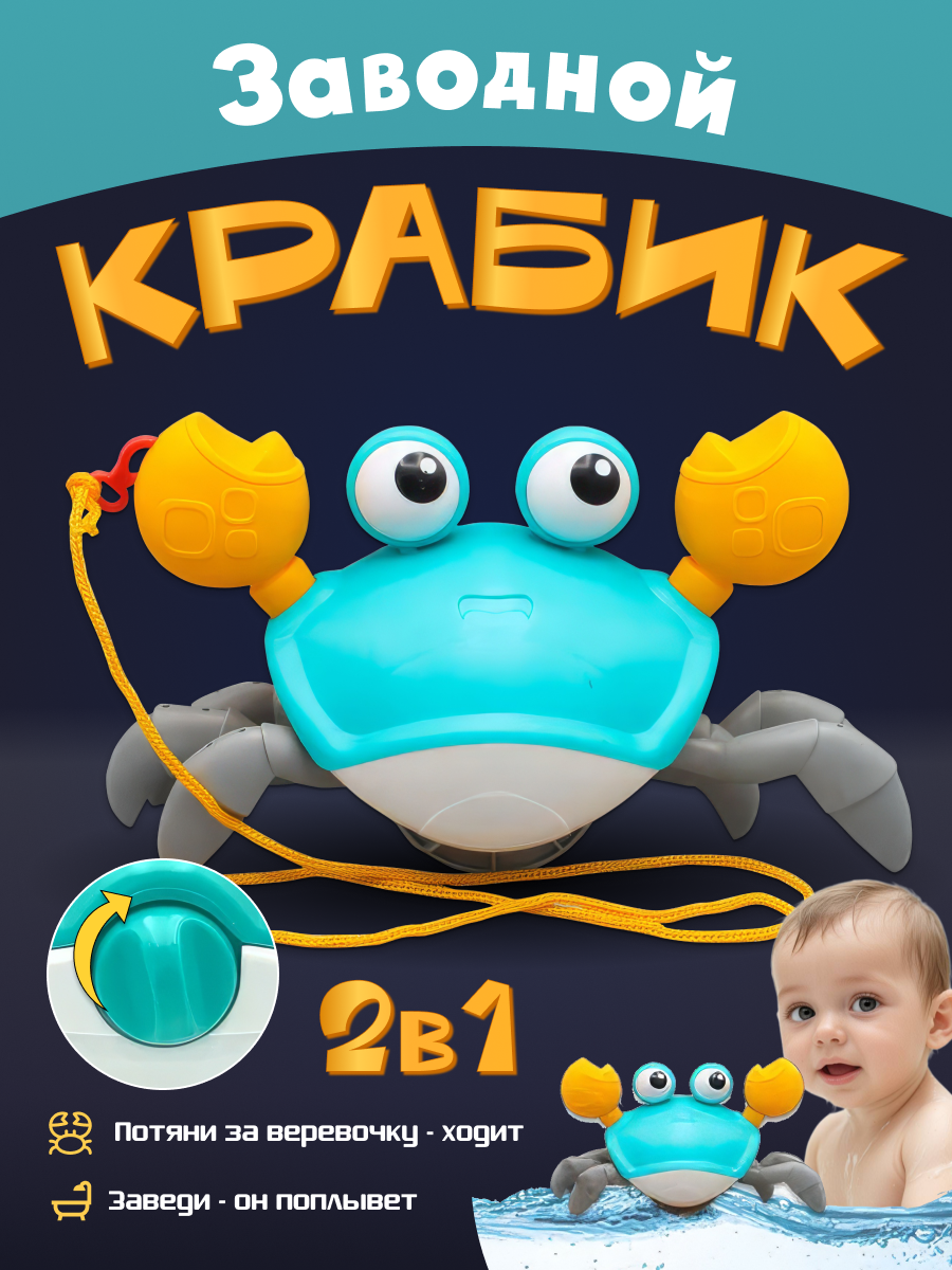 Купить Игрушка заводная бегающий Крабик cute crab 22 х 11 х 12 см на веревочке, подходит для ванной