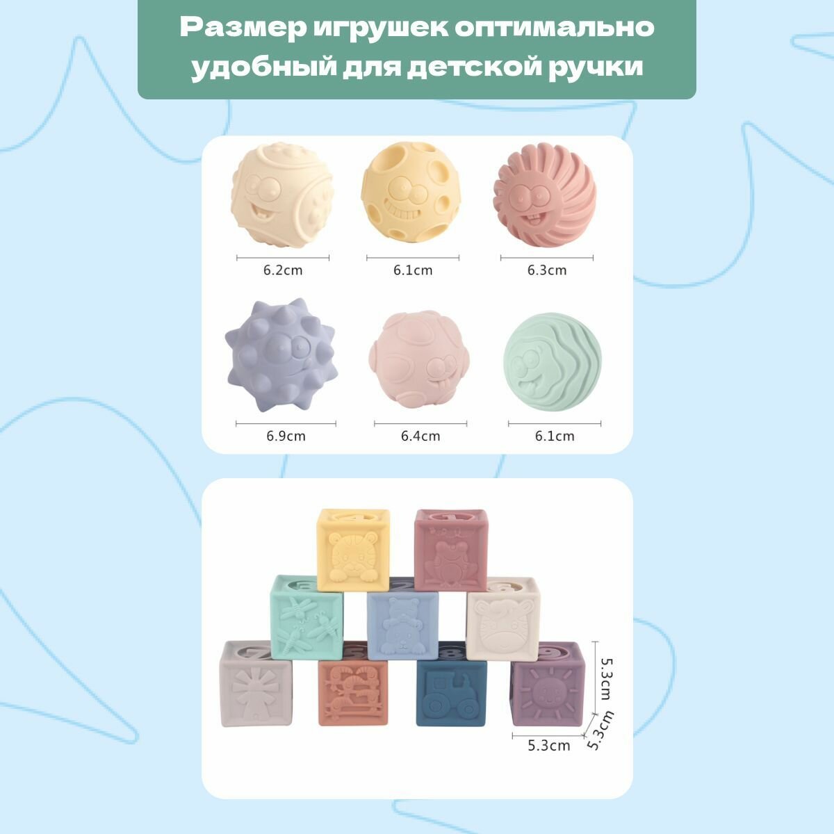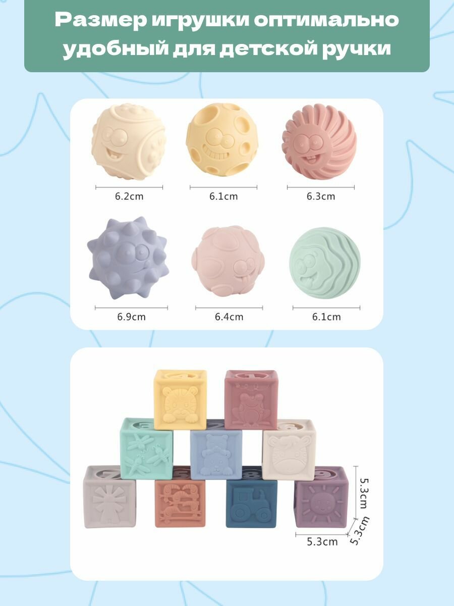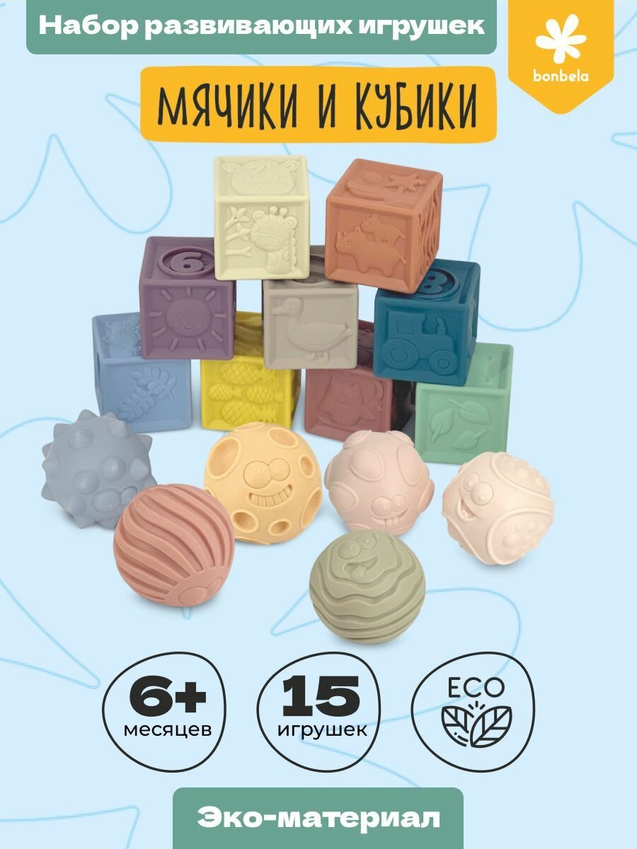 Игрушки для ванной 15 штук Bonbella "Мячики и кубики" интересное: