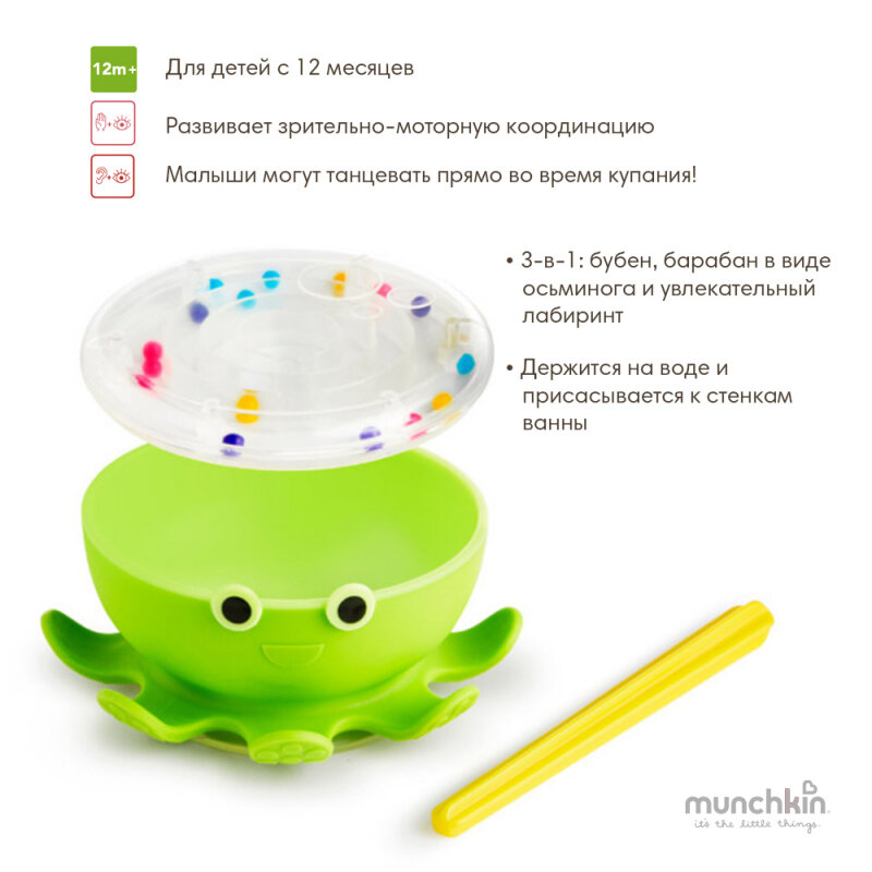 Munchkin Музыкальная игрушка для ванны Octodrum ™ 3-в-1 12+ NEW интересное: