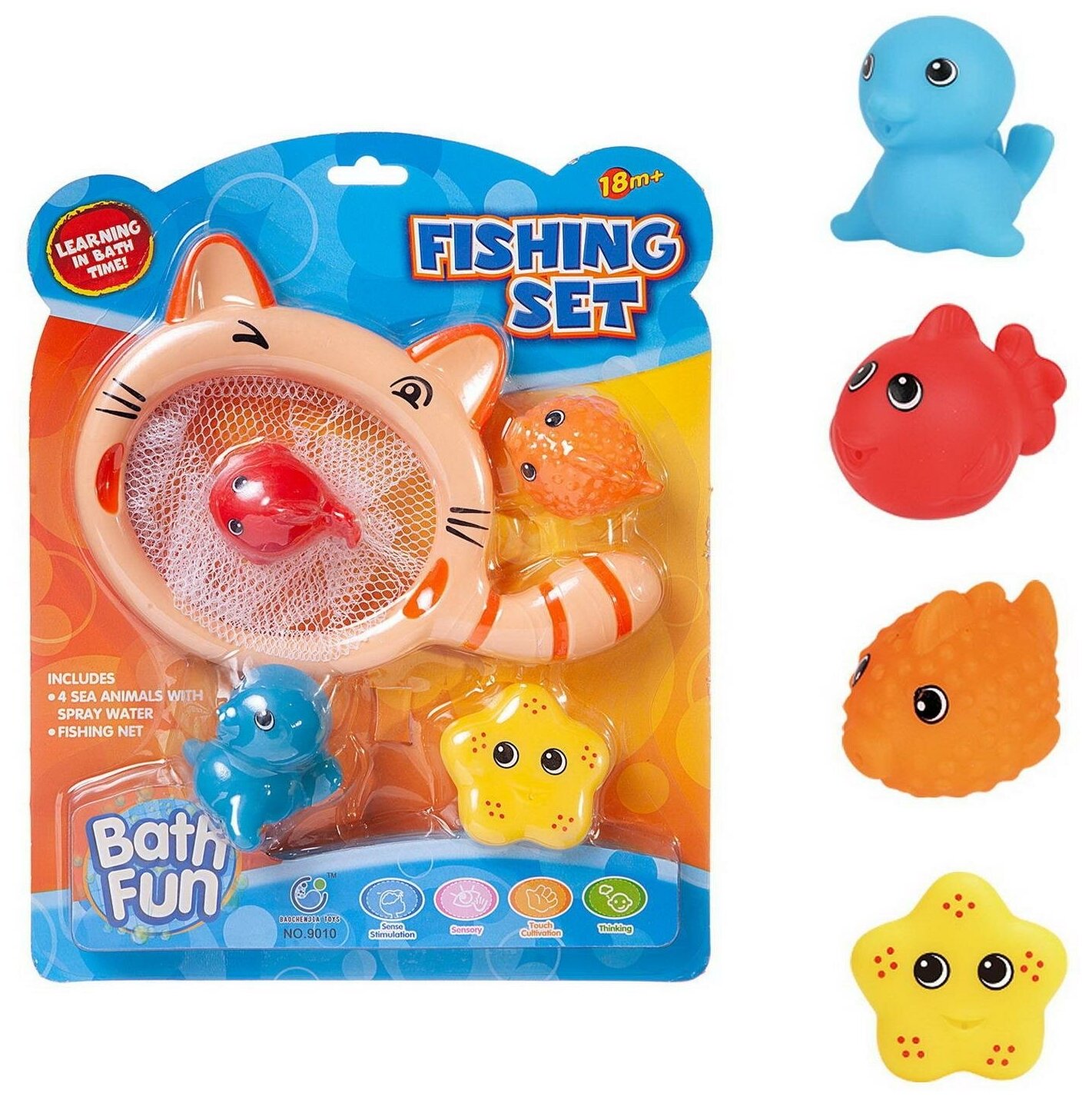 Купить Набор игрушек для ванной Junfa Cачок и 4 фигурки морских обитателей 9010