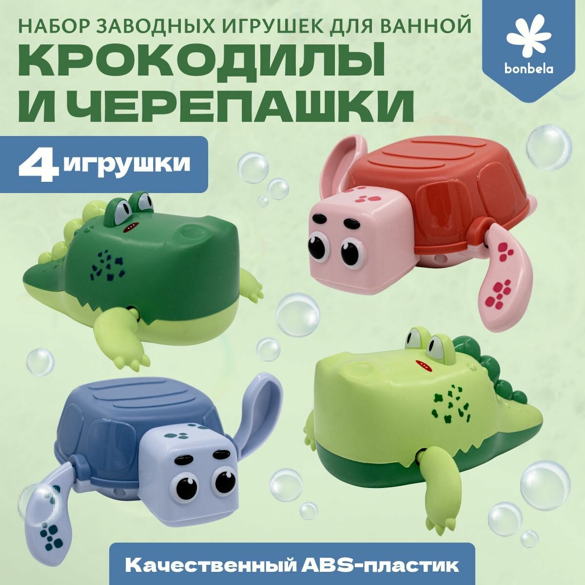 Купить Игрушки для ванной (заводные) 4 штуки Bonbella "Крокодилы и Черепашки"