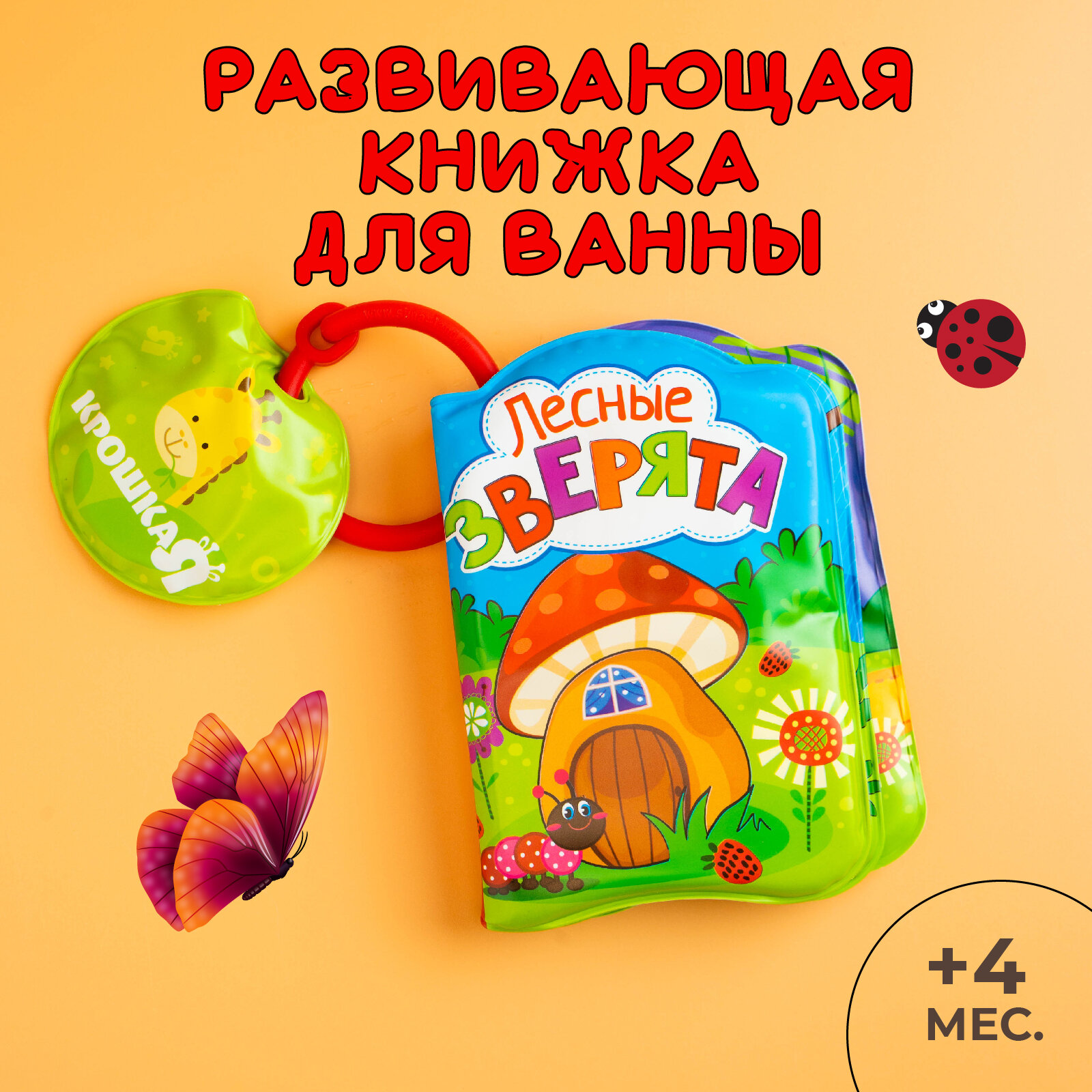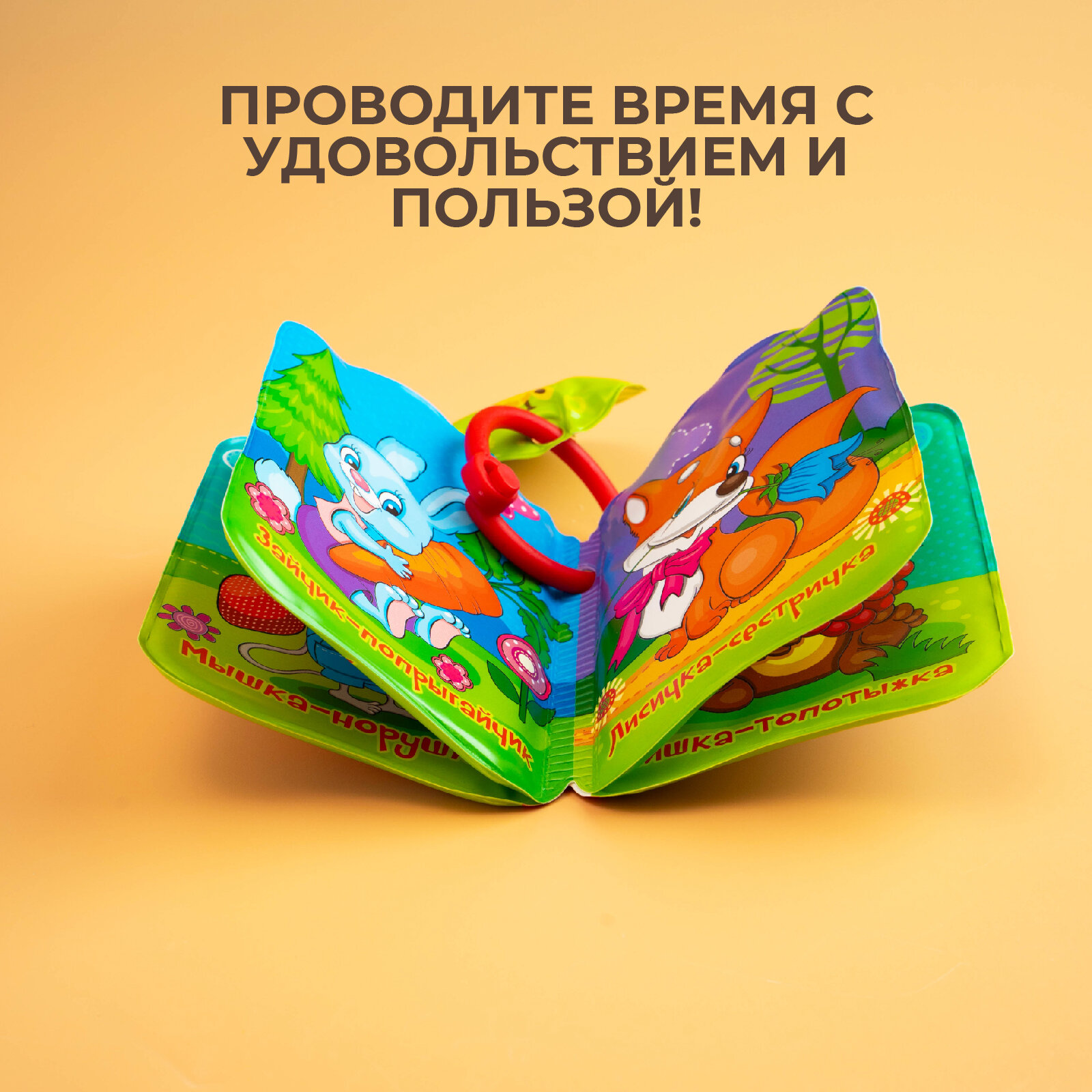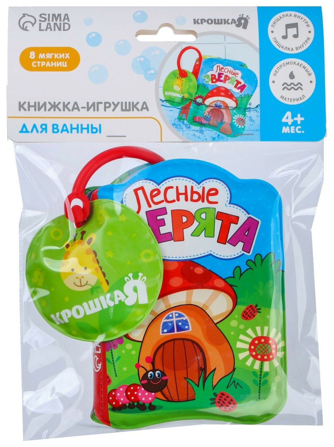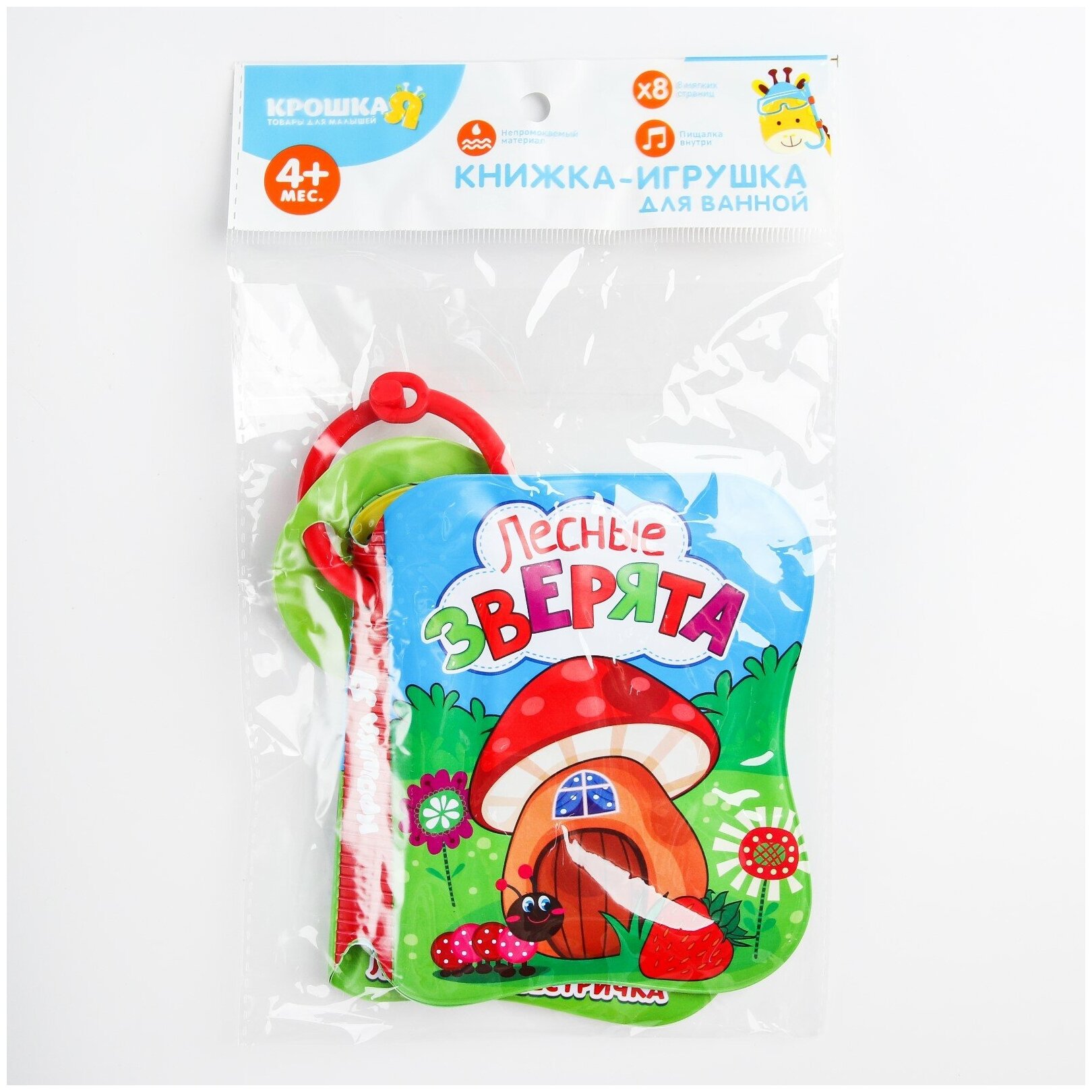 Книжка для игры в ванной "Лесные зверята", 8 мягких страничек, не пропускает влагу, пищит при нажатии, для детей и малышей интересное:
