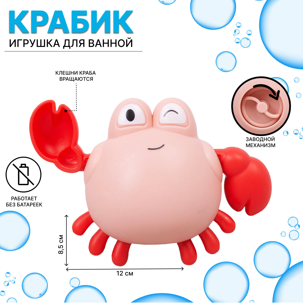 Игрушка заводная для ванной Крабик, цвет розово-красный (JL2025-4) интересное:
