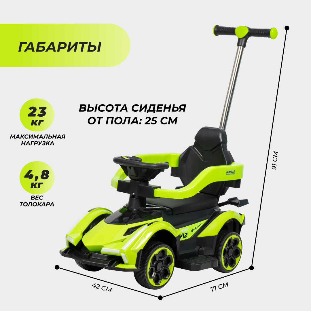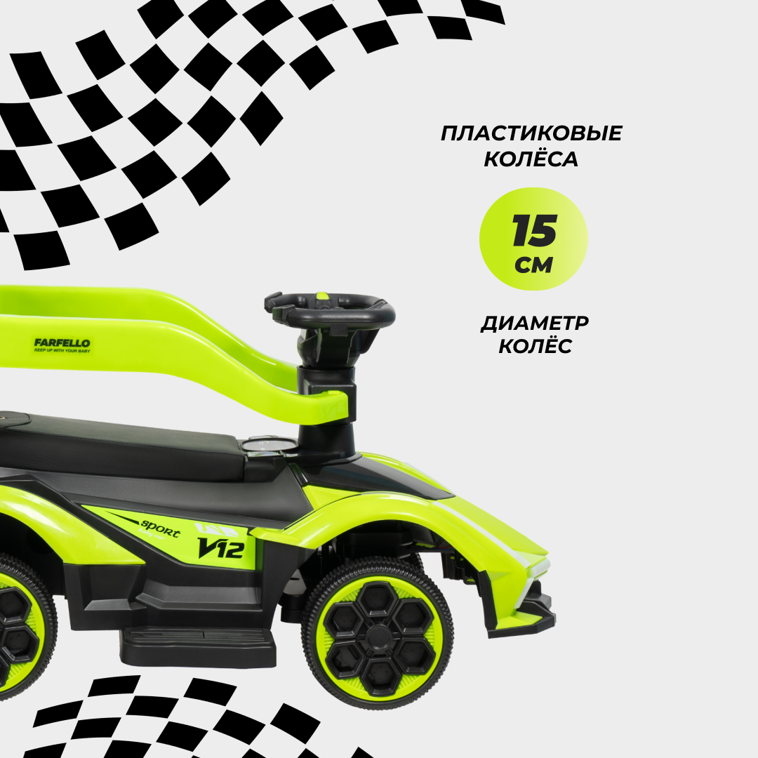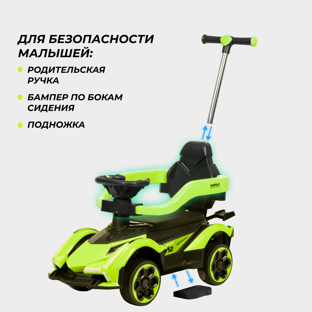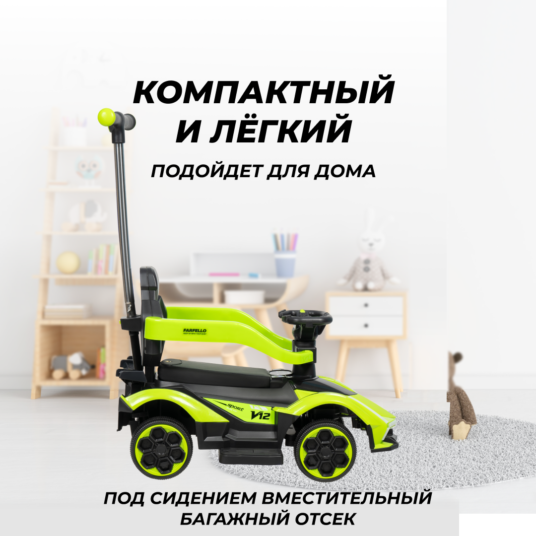 Каталка толокар lamborghini для детей машинка Farfello, зеленый интересное: