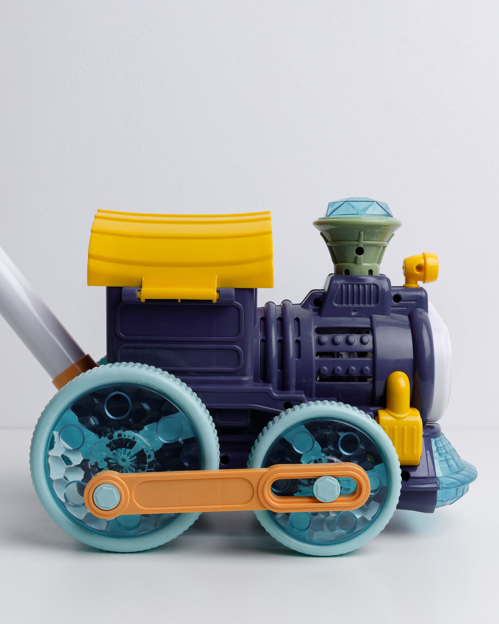 Купить Каталка-мыльные пузыри "Паровозик", с ручкой, светом и звуком для детей