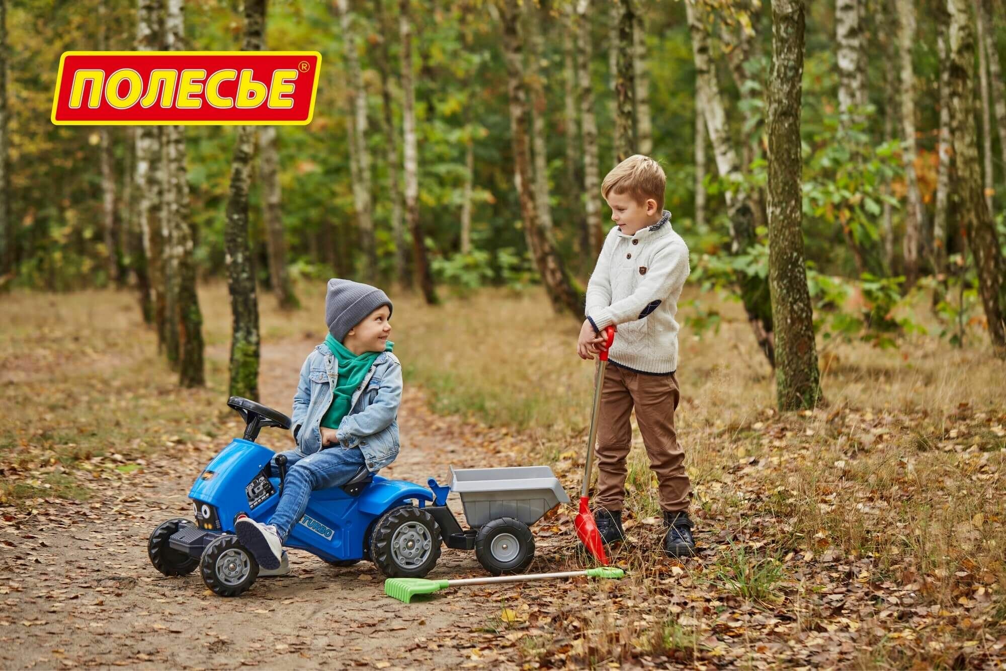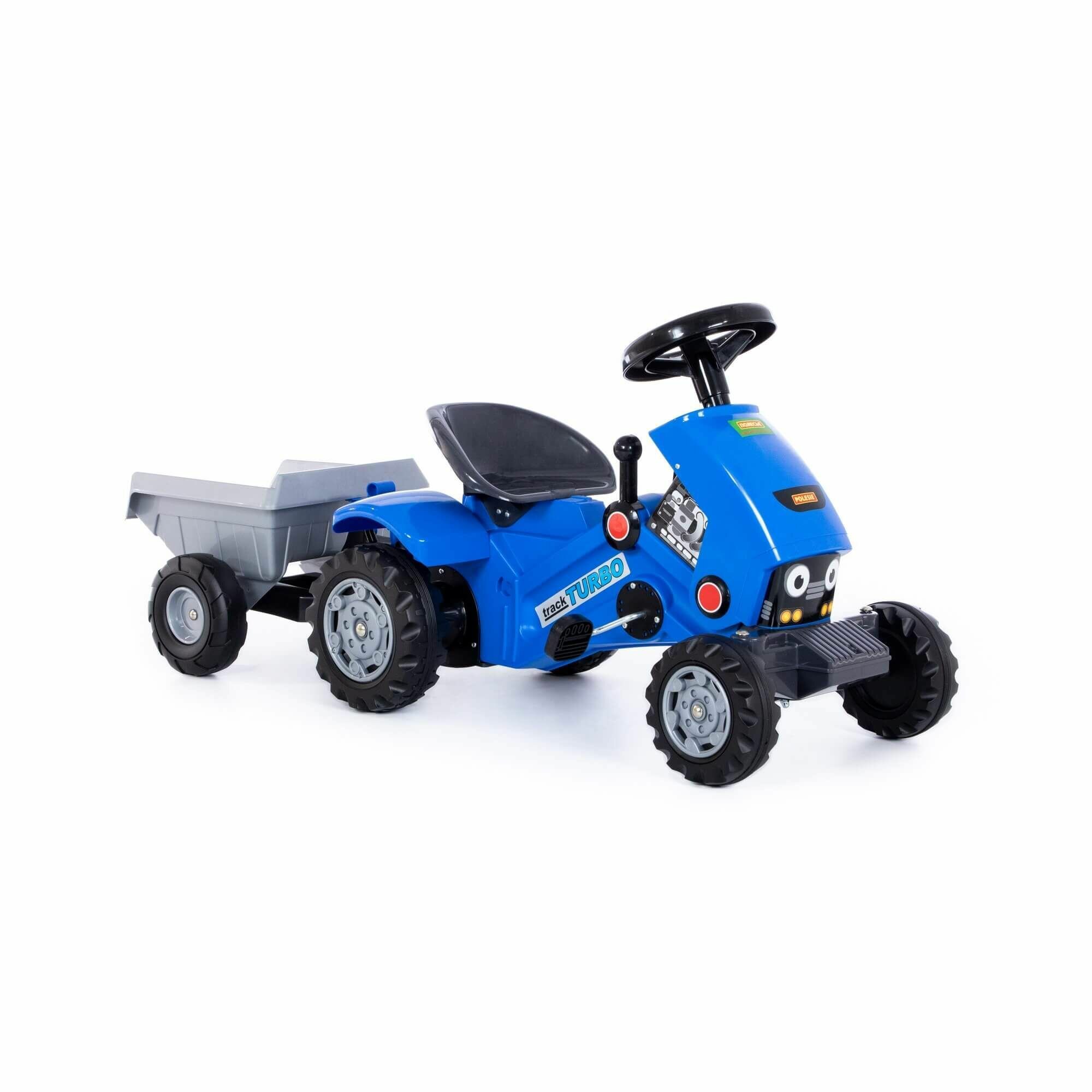 Каталка-трактор с педалями Полесье "Turbo-2"с полуприцепом, синий. Подарок для мальчиков. Артикул 84651 интересное: