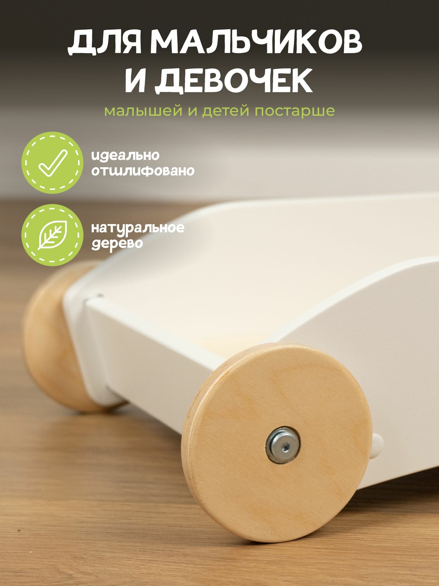 Детская игровая тележка "КАТАЛКА" от "Pappado", цвет белый + лак, 30х46х48 см интересное: