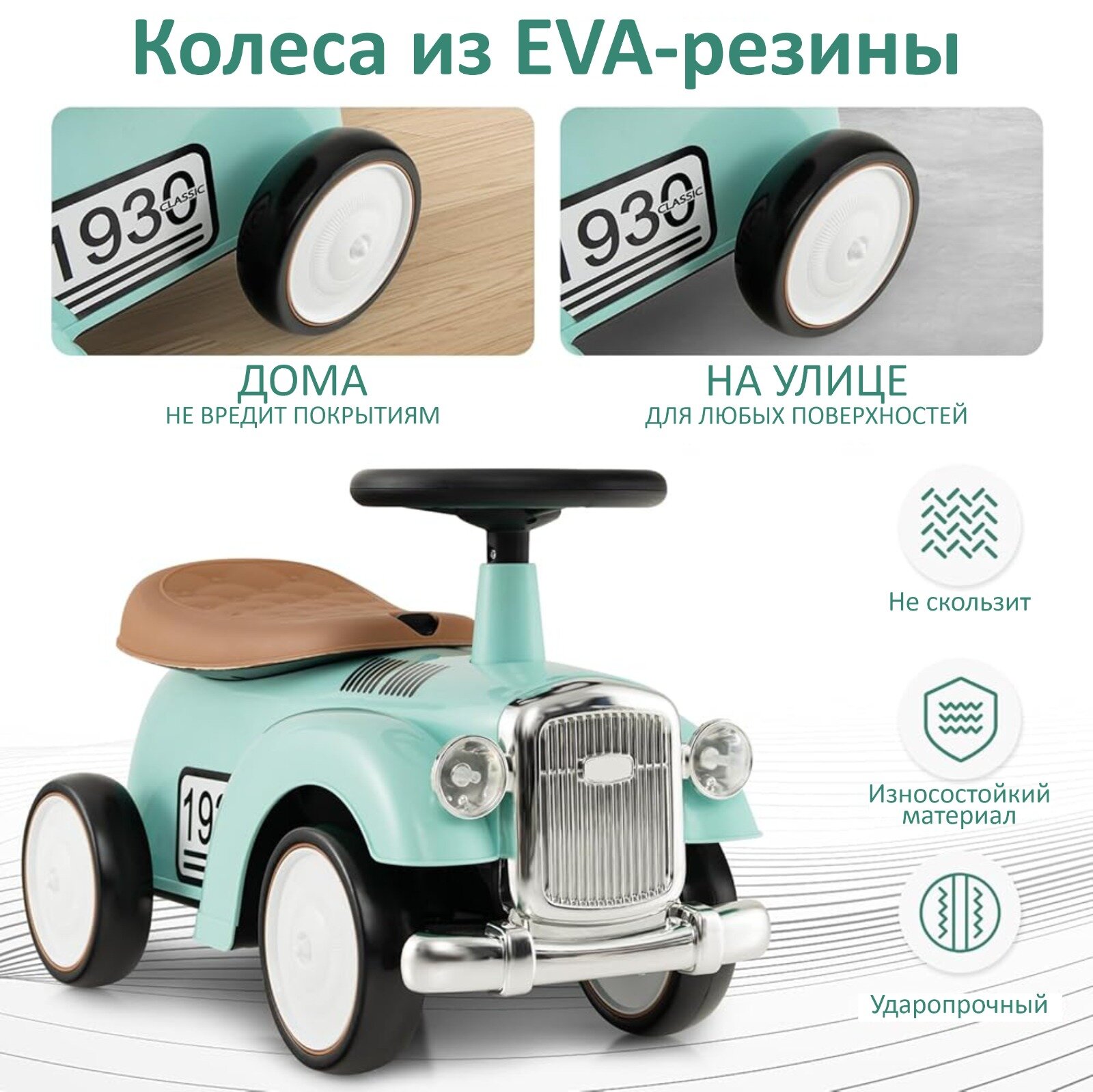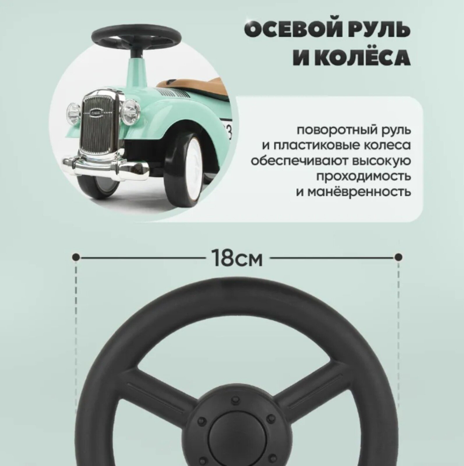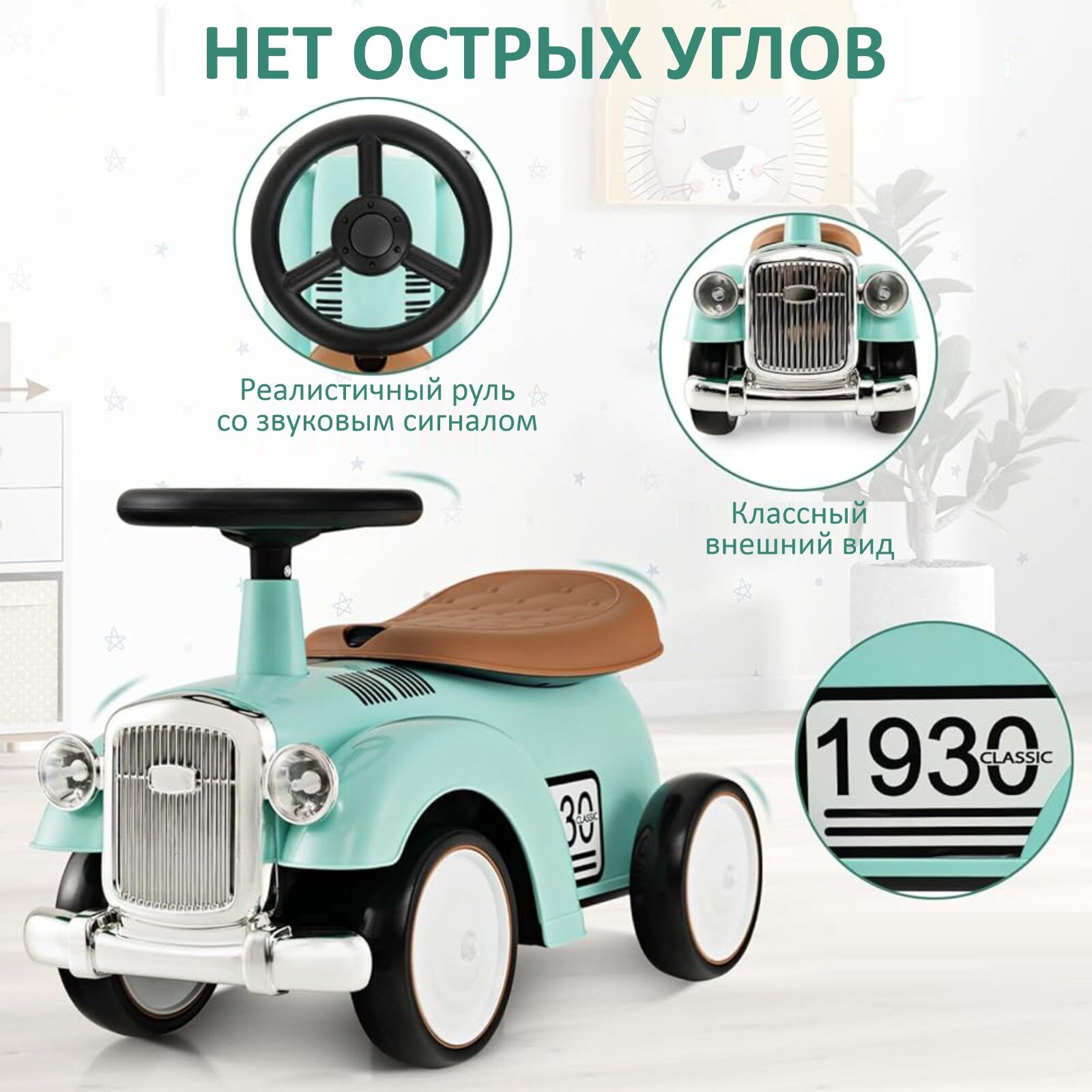 Каталка-толокар NovaKids "Ретро", с отсеком для хранения, звуковой сигнал (Бирюзовый) интересное:
