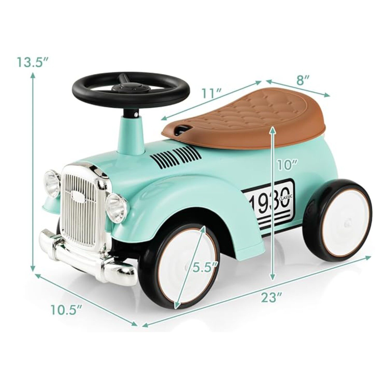 Купить Каталка-толокар NovaKids "Ретро", с отсеком для хранения, звуковой сигнал (Бирюзовый)