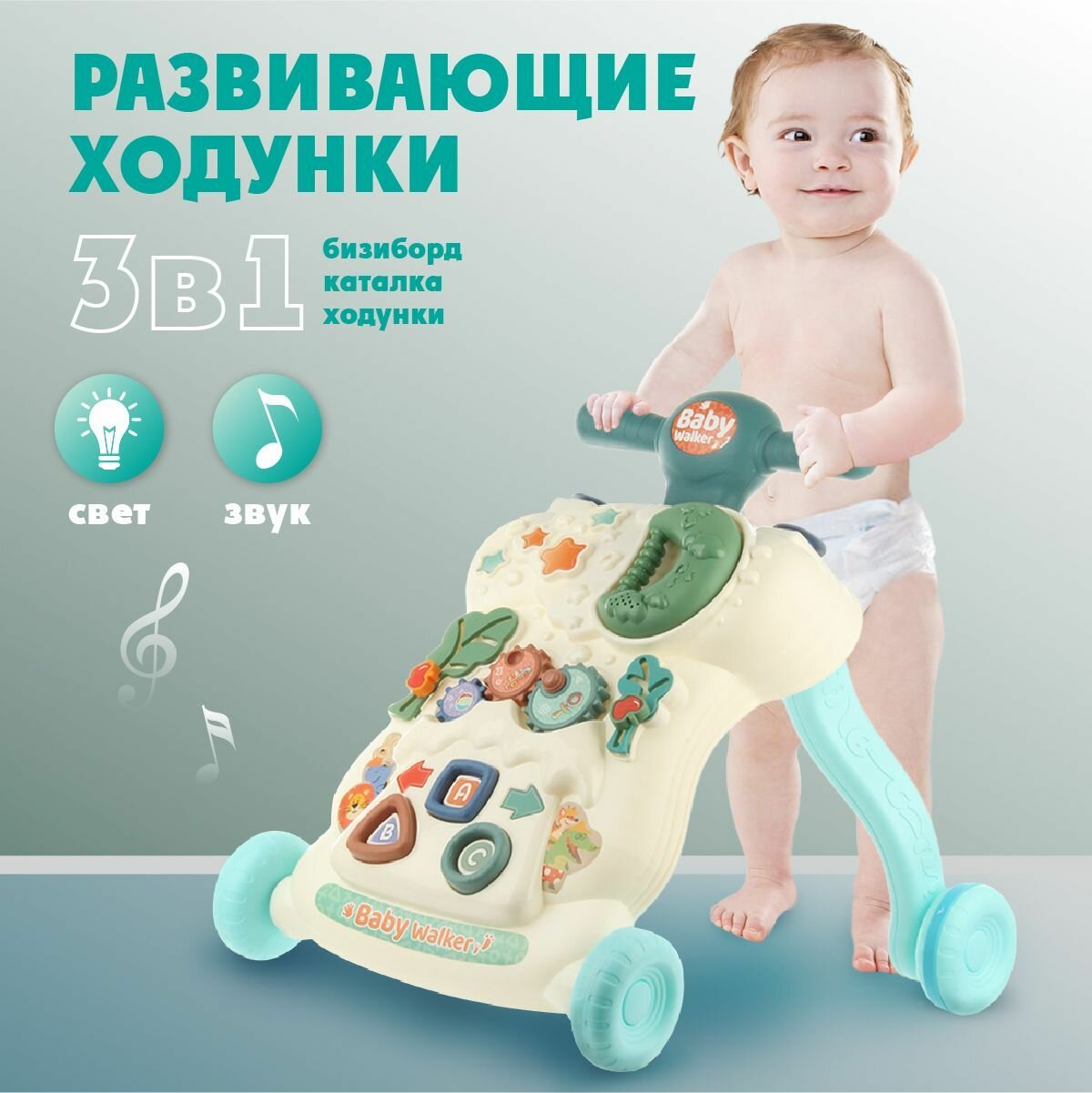 Детские ходунки каталки 3 в 1 со светом и звуком, Veld Co / Развивающий бизиборд для детей / Игровой столик для малышей интересное: