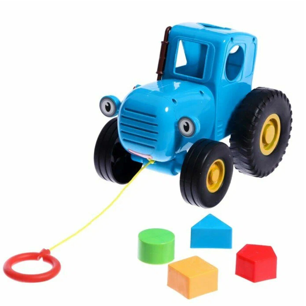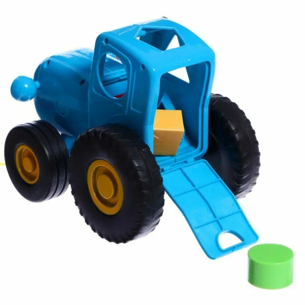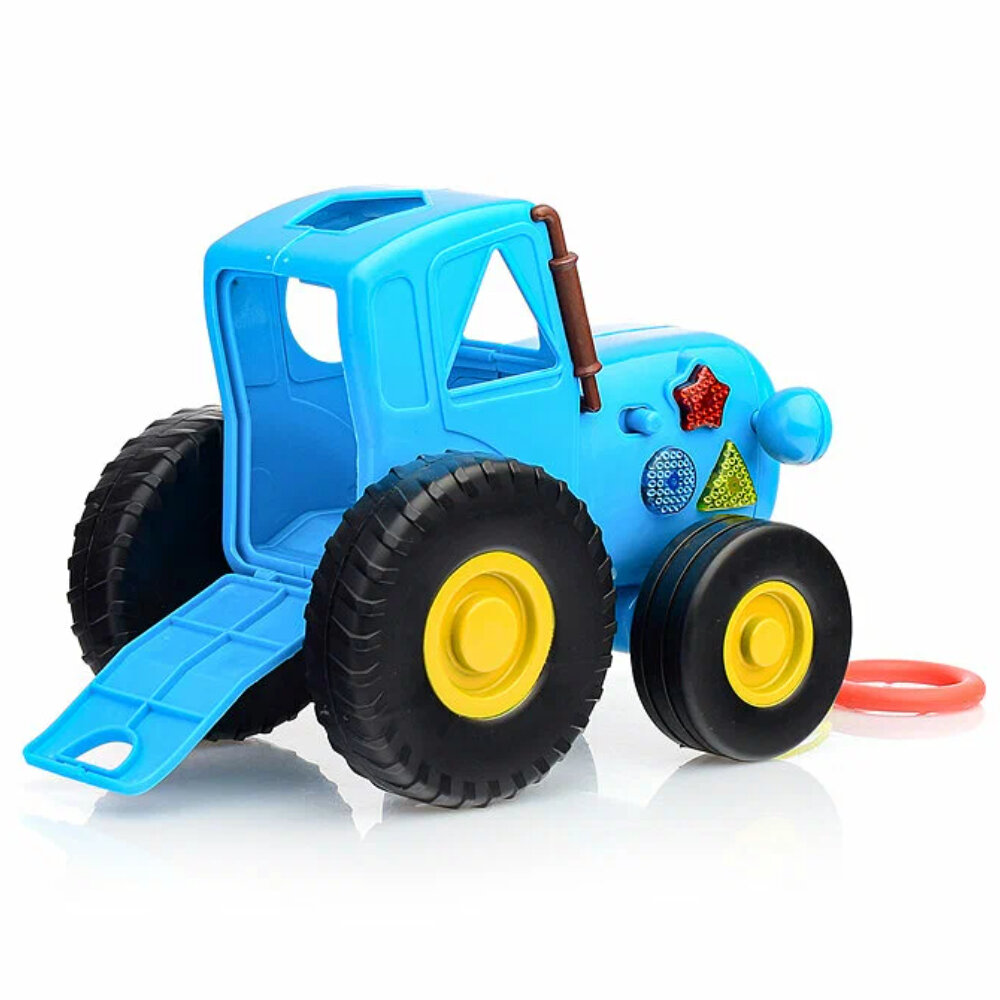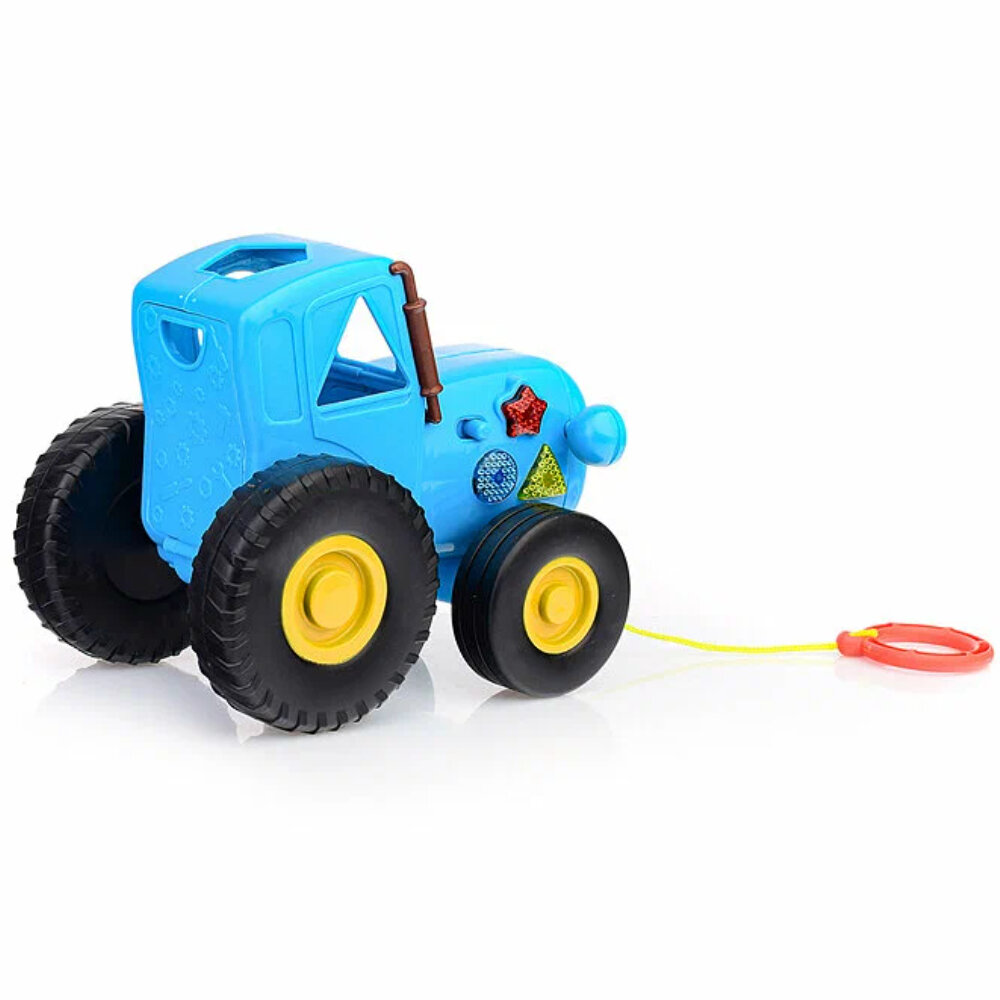 Купить Музыкальная игрушка каталка сортер Синий трактор на веревочке для малышей, 50+ звуков, песни, сказки и загадки, свет, 19 х 13 х 15,5 см, HT1262-R