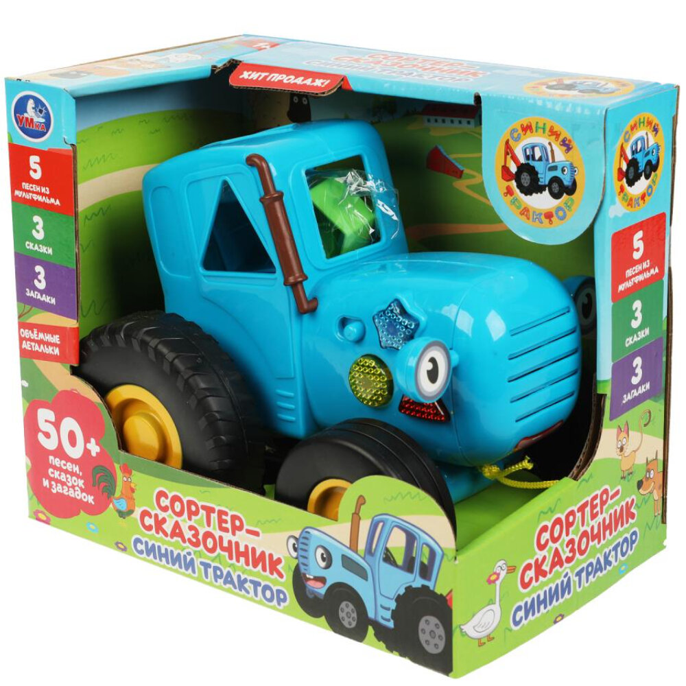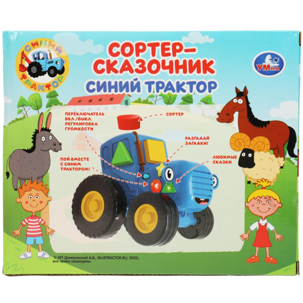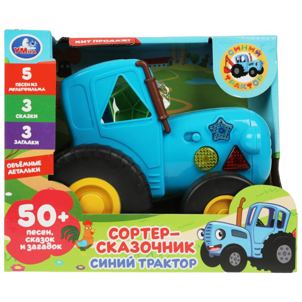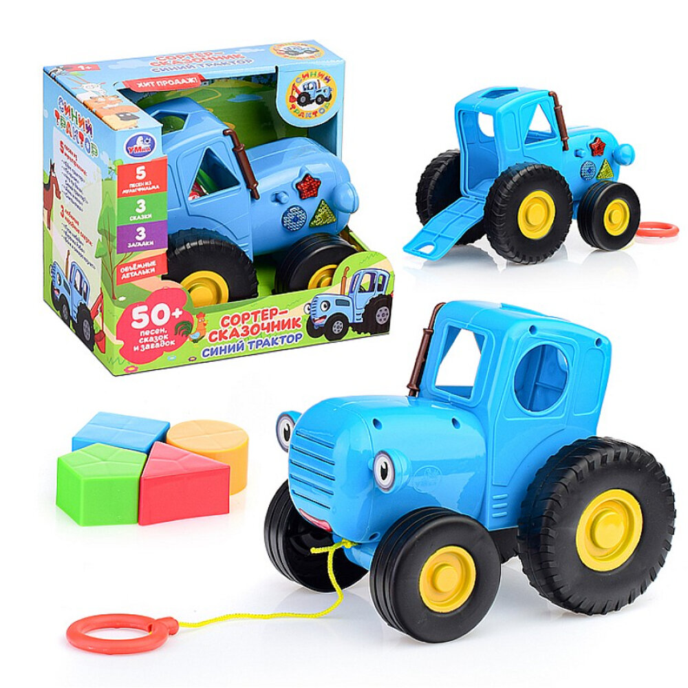 Купить Музыкальная игрушка каталка сортер Синий трактор на веревочке для малышей, 50+ звуков, песни, сказки и загадки, свет, 19 х 13 х 15,5 см, HT1262-R