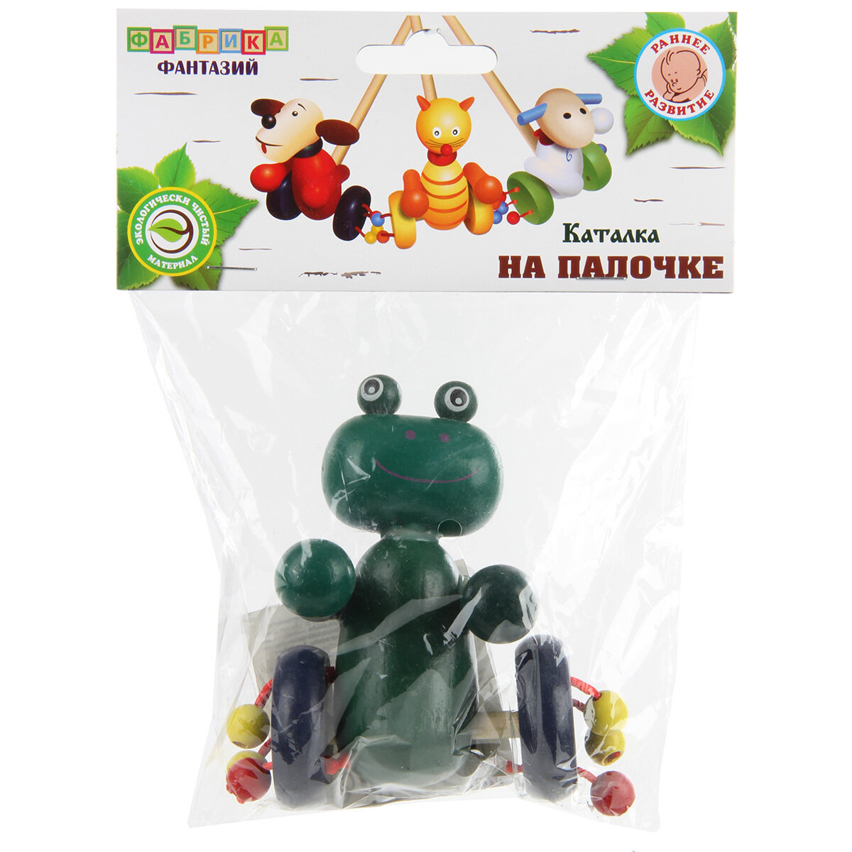 Купить Деревянная игрушка "Каталка Лягушка на палочке", Фабрика Фантазий