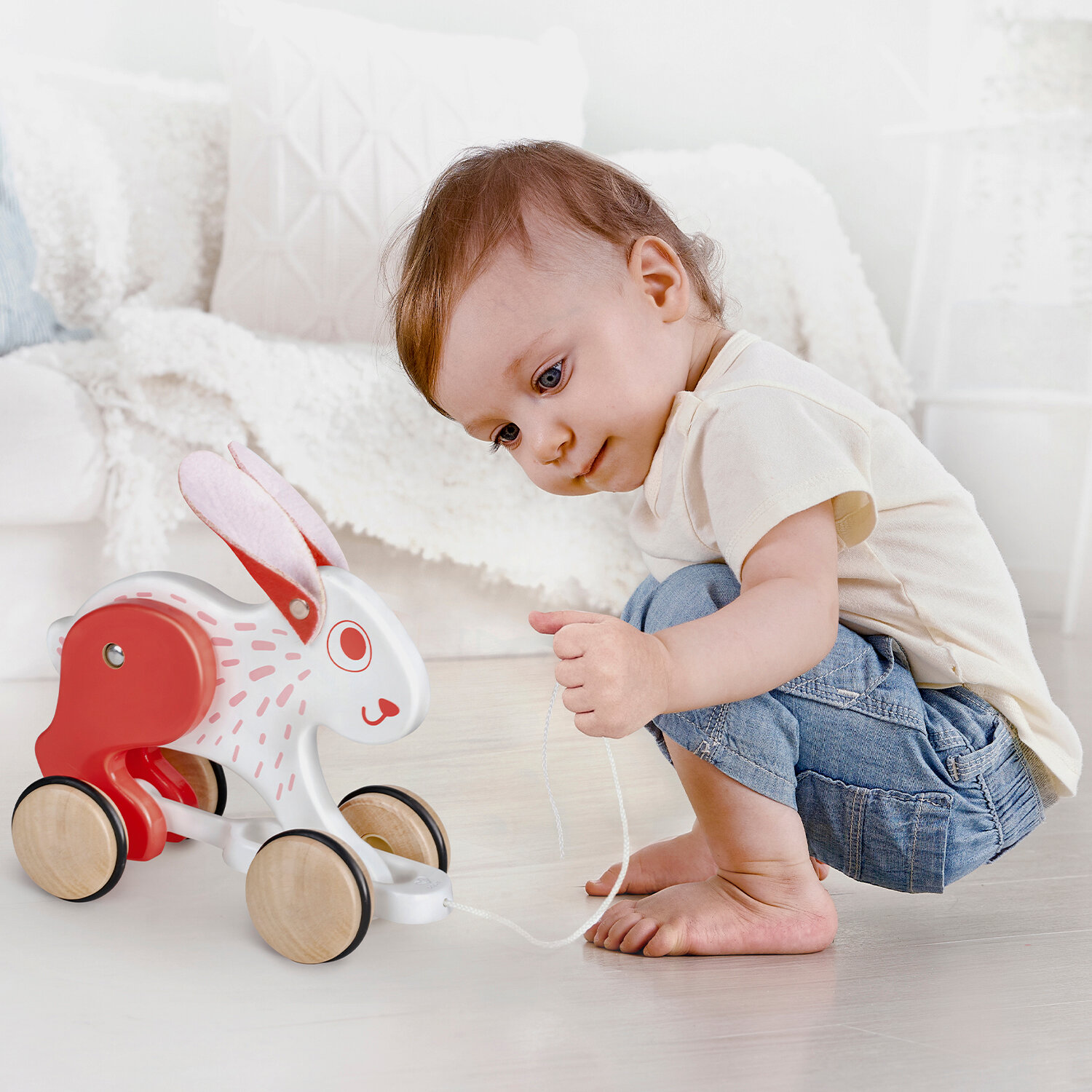 Купить Каталка-игрушка детская на веревочке Hape "Зайчонок" E0918_HP
