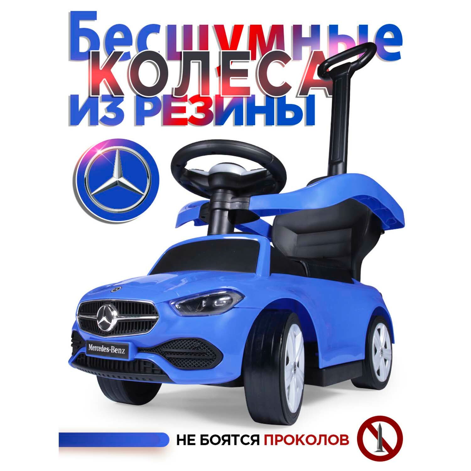 Купить Каталка детская Mercedes-Benz AMG C63 Coupe Babyсare, (кожаное сиденье, резиновые колеса), синий