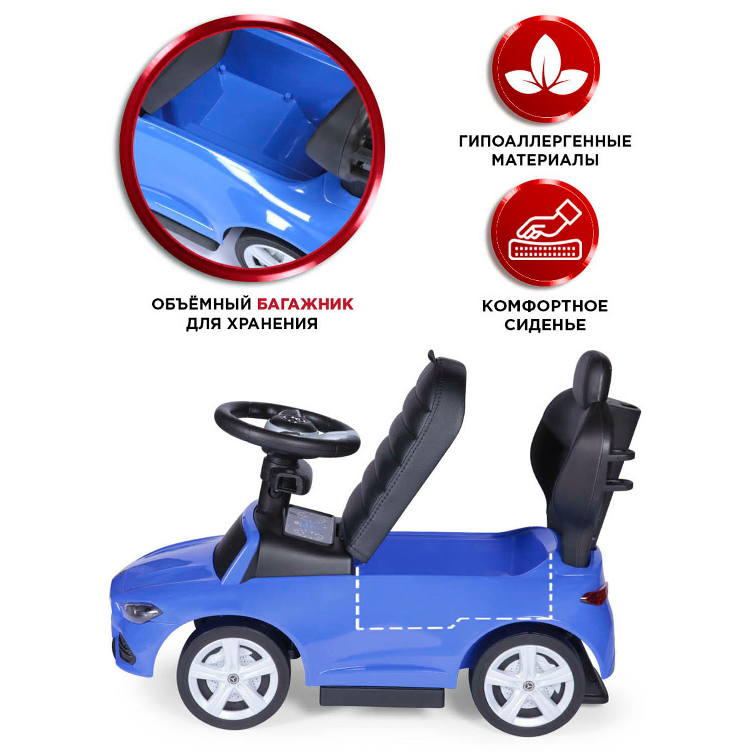 Каталка детская Mercedes-Benz AMG C63 Coupe Babyсare, (кожаное сиденье, резиновые колеса), синий интересное: