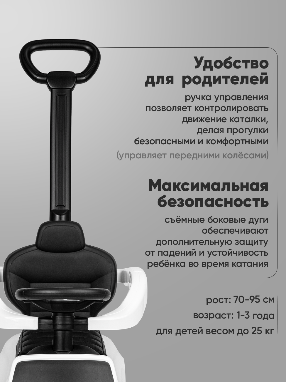 Каталка детская Mercedes С-Class, с родительской ручкой, звук, прорезиненные колеса