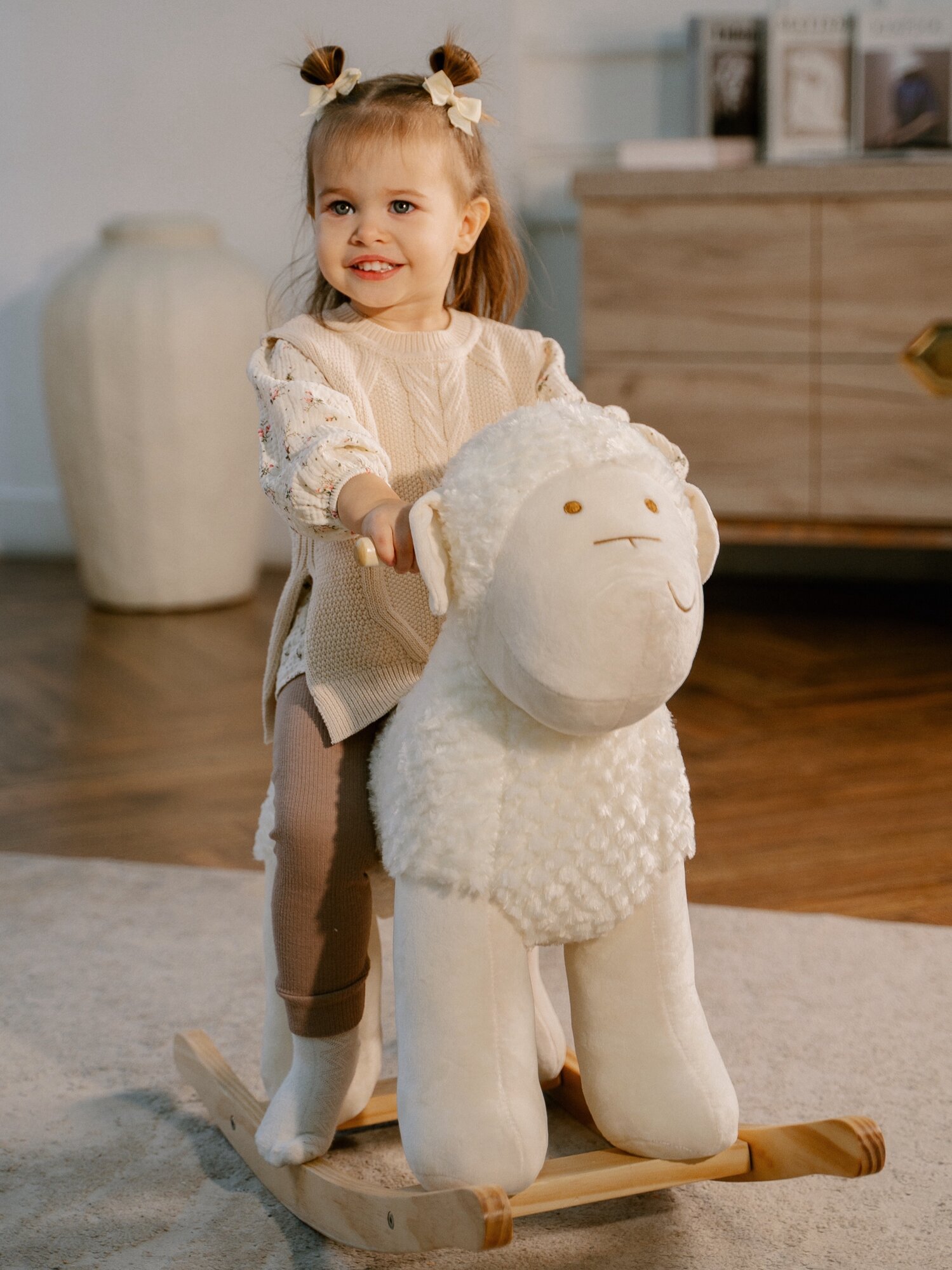 Игрушка качалка детская деревянная, овечка для детей интересное: