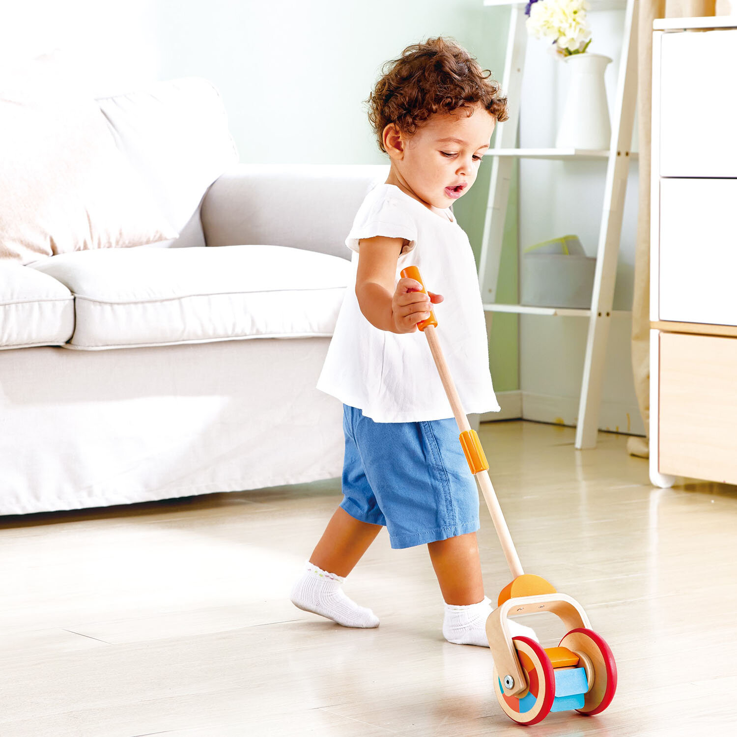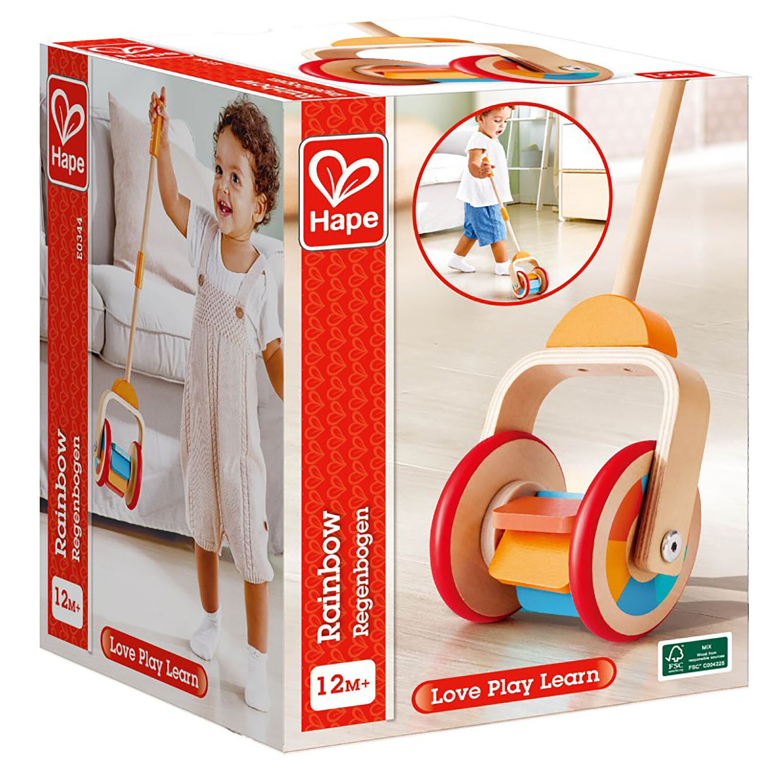 Купить Каталка детская деревянная с ручкой Hape "Первый шажок" E0344_HP