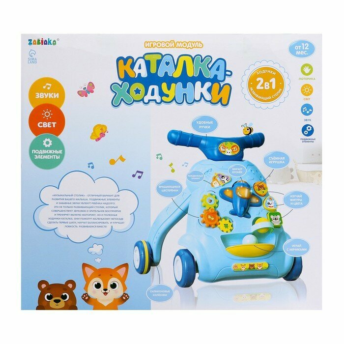 Купить ZABIAKA Развивающая каталка-ходунки, звуковые и световые эффекты, уценка (помята коробка, наклеек в комплекте нет)