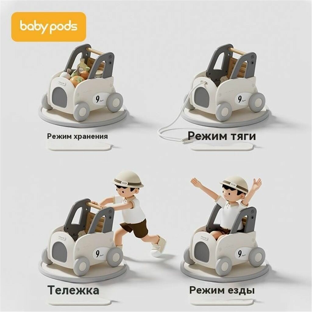 Машинка-каталка Vroomy с регулируемыми ремнями безопасности и эргономичной ручкой, устойчивые колеса для первых шагов интересное: