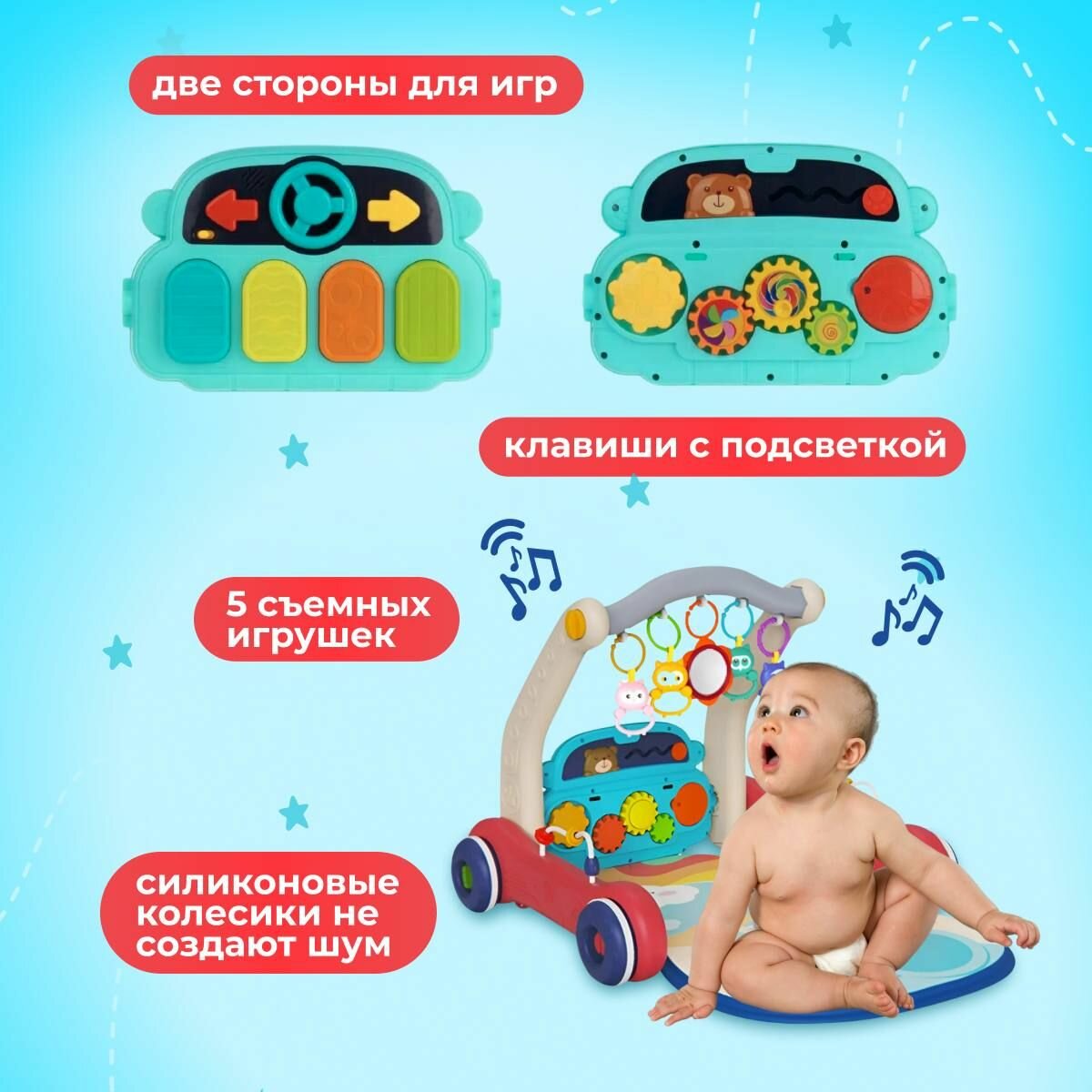 Купить Развивающие ходунки 2 в 1 : хорошая устойчивость, музыка, подсветка