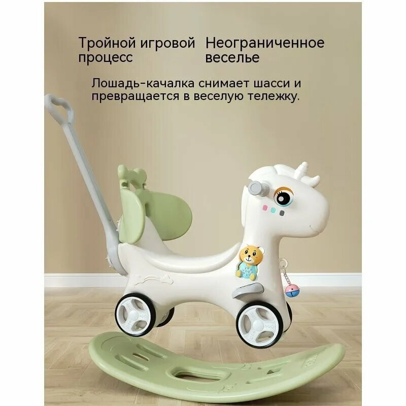 Купить Лошадка-качалка-каталка с ручкой для детей и беговел, для дома и улицы, красный