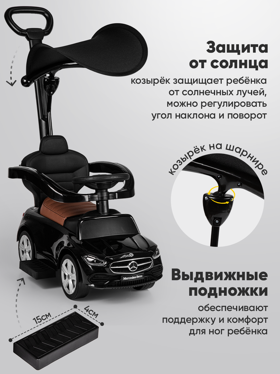 Каталка детская Mercedes С-Class с родительской ручкой, прорезиненные колеса, звук интересное: