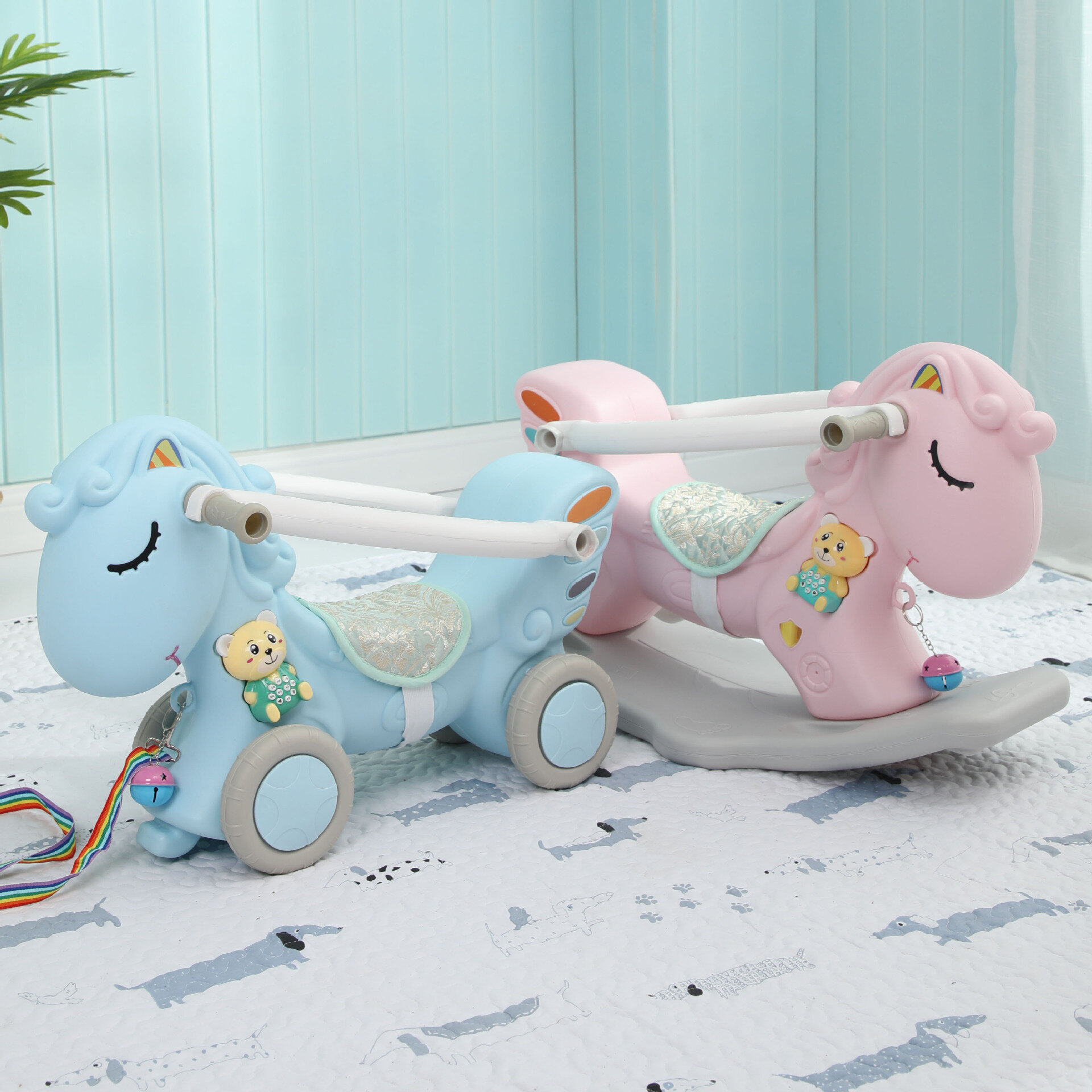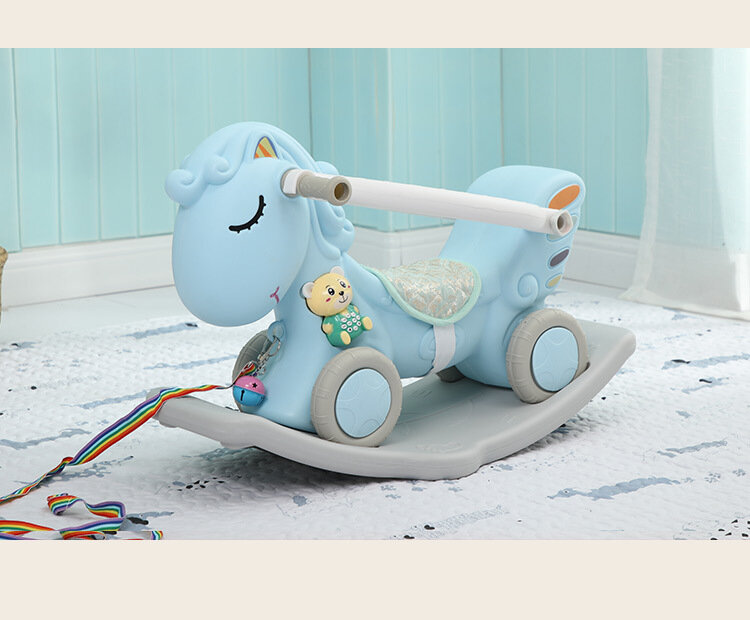 Лошадка-качалка "Троянский конь", для детей от 0 до 1 года, синий, с колесами