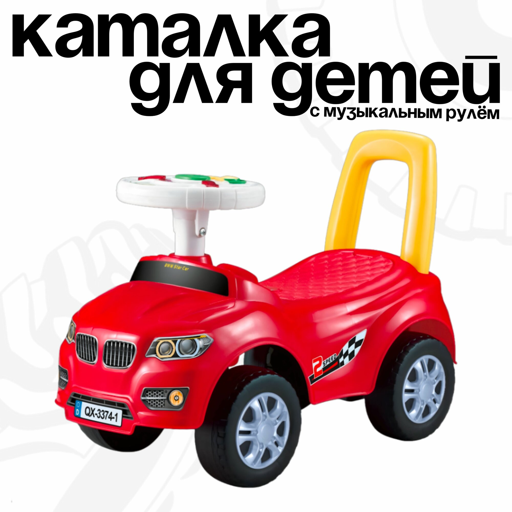 Купить Машинка-каталка пушкар, толокар, с музыкальным рулем красный БМВ