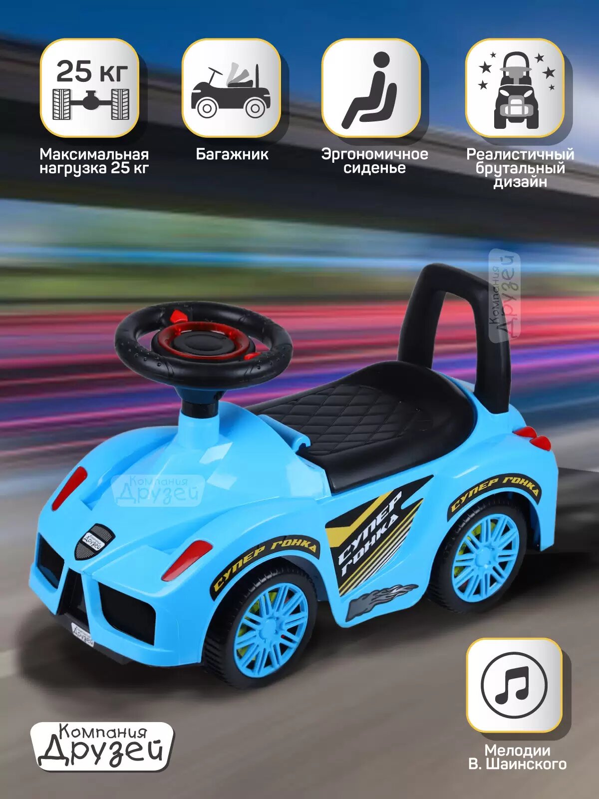 Купить Толокар "Компания Друзей" JB5300466, интерактивный, звуковые эффекты, от 1 года. голубой