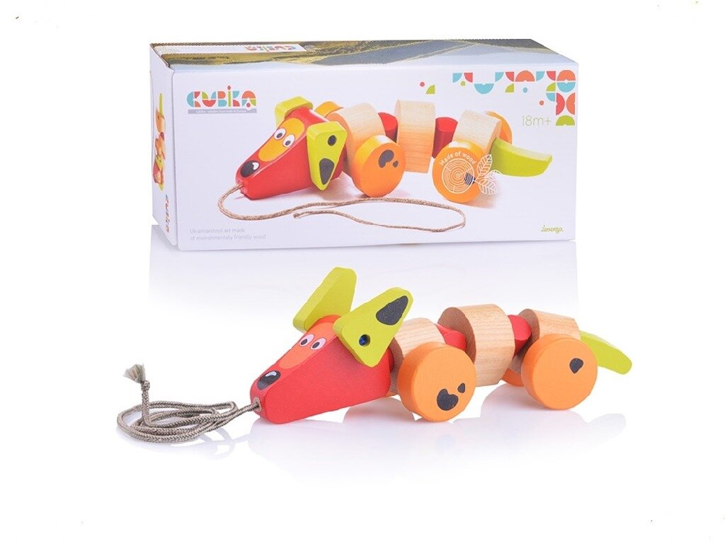 CUBIKA. Деревянная каталка "Такса" разноцветная, развивающая, от 1,5 лет интересное: