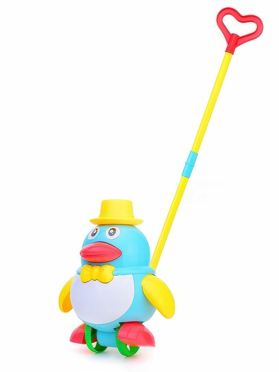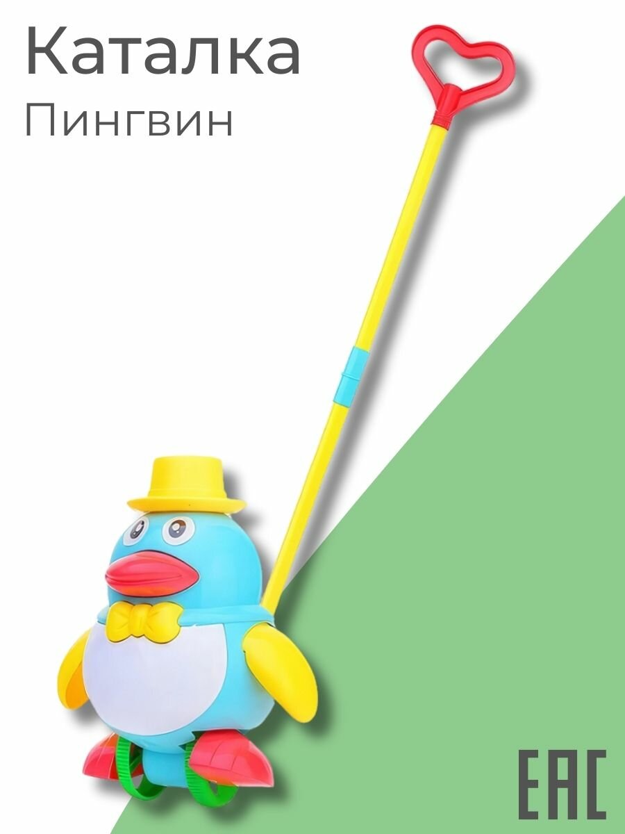 Игрушка каталка с ручкой детская на палочке Пингвин, голубой интересное: