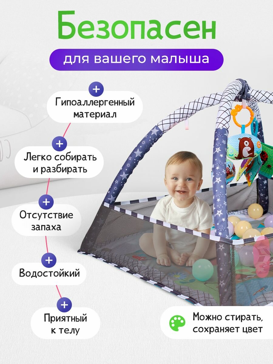 Коврик-манеж для новорожденных 0+ "Веселый малыш" с бортиками, игрушками и шариками интересное: