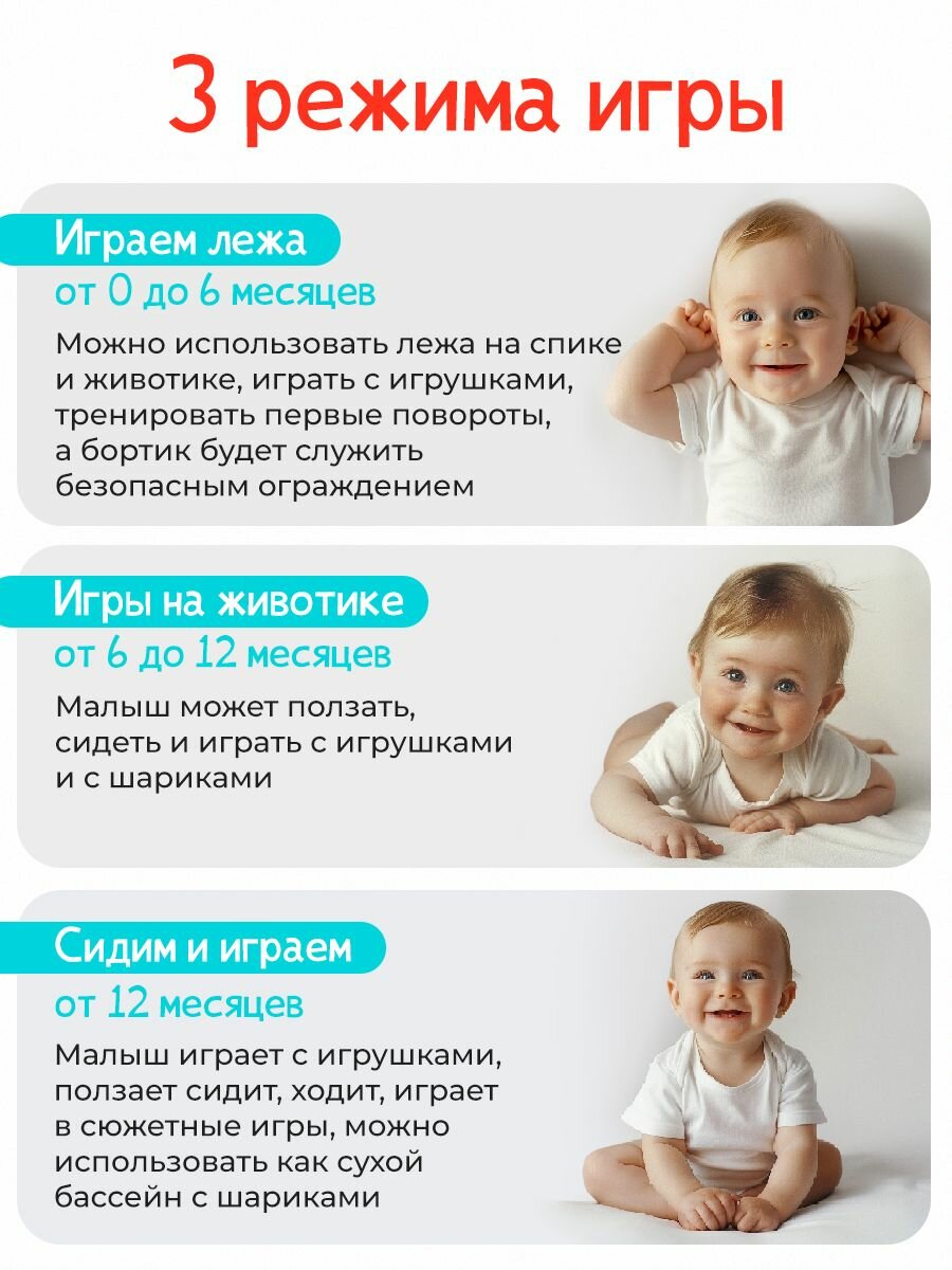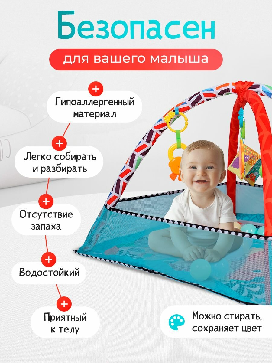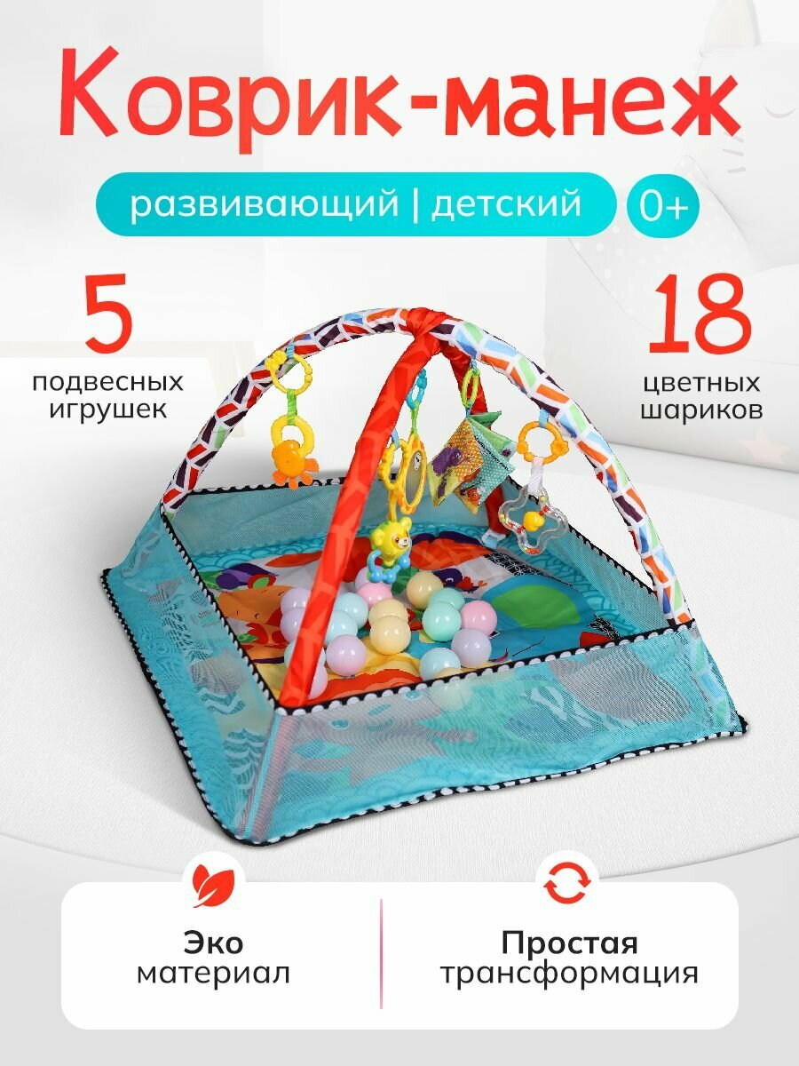 Коврик-манеж с бортиками развивающий с игрушками и шариками "Весёлый малыш-2" для новорожденных, 80х80х55см. интересное: