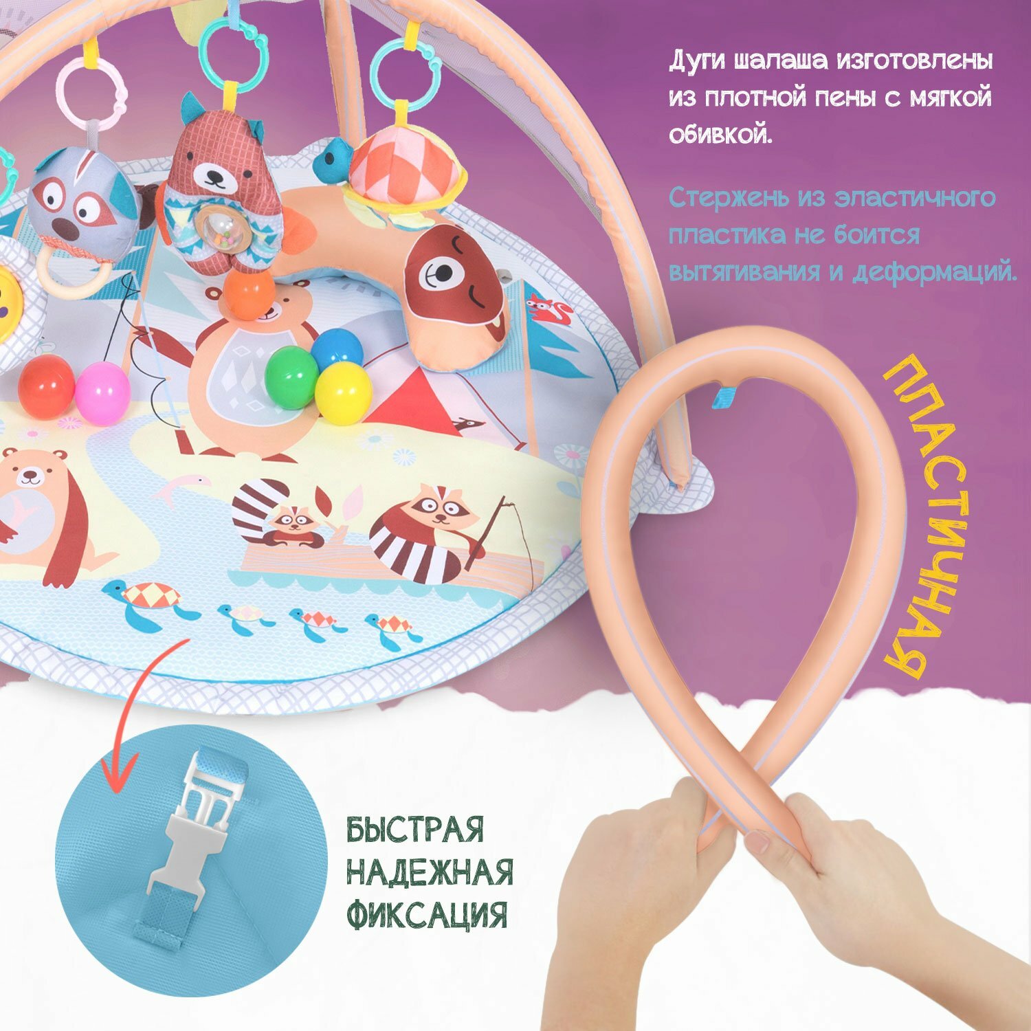 | Комплектация | дуги / подвесные игрушки / подушка |