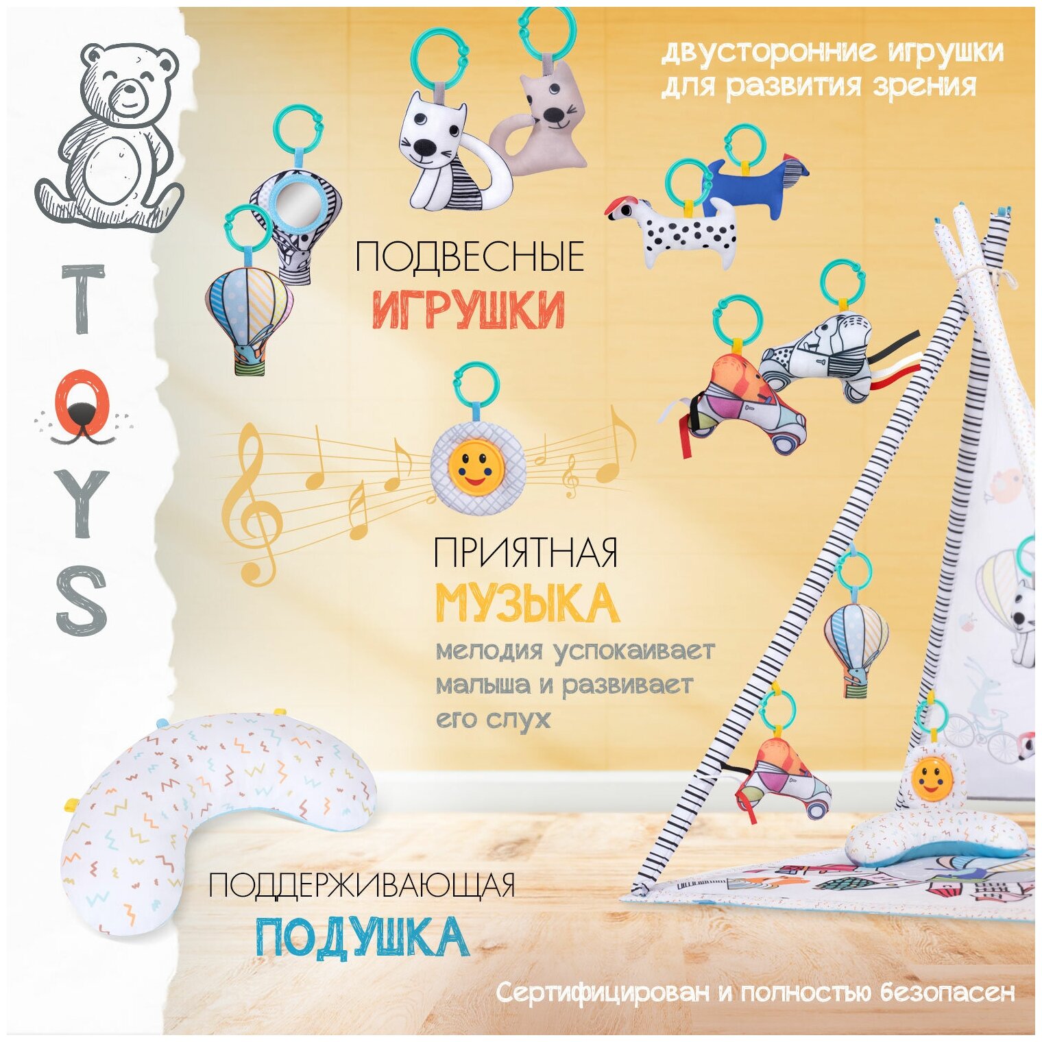 | Комплектация | дуги / подвесные игрушки / подушка |