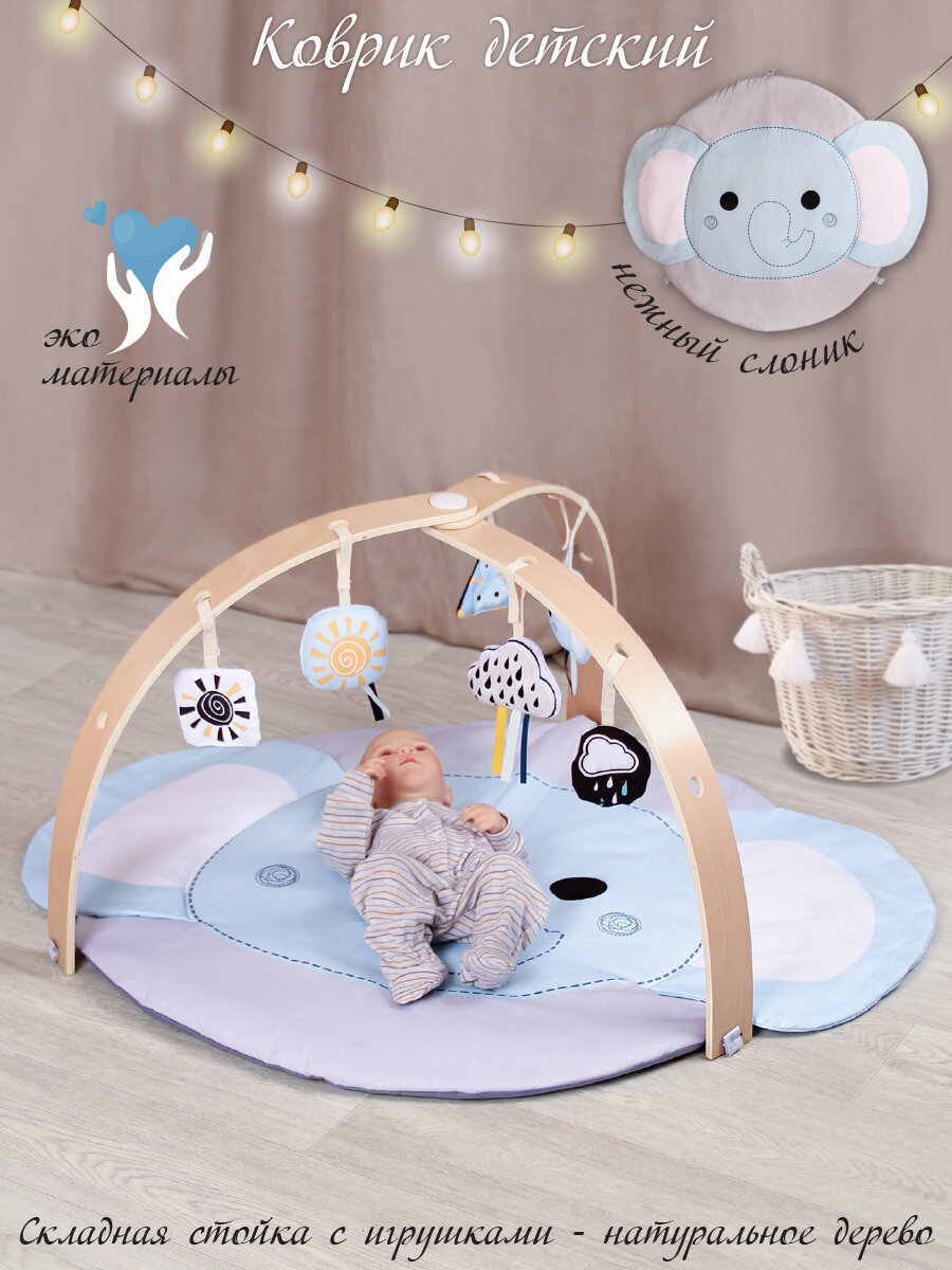 Развивающий коврик детский "Слоник", Veld Co / Дуга с игрушками для малышей / Подвесные погремушки для детей интересное: